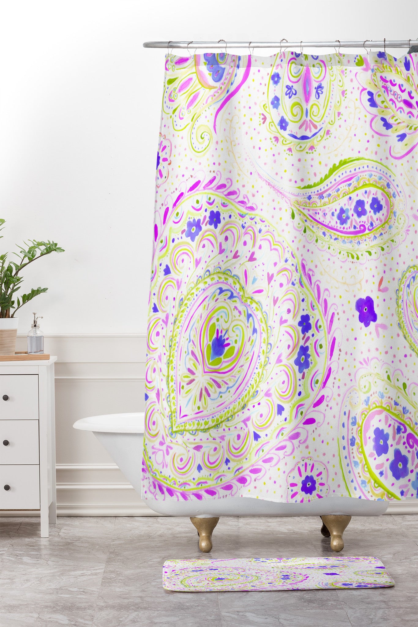 Jacqueline Maldonado Watercolor Paisley Purple Shower Curtain And Mat