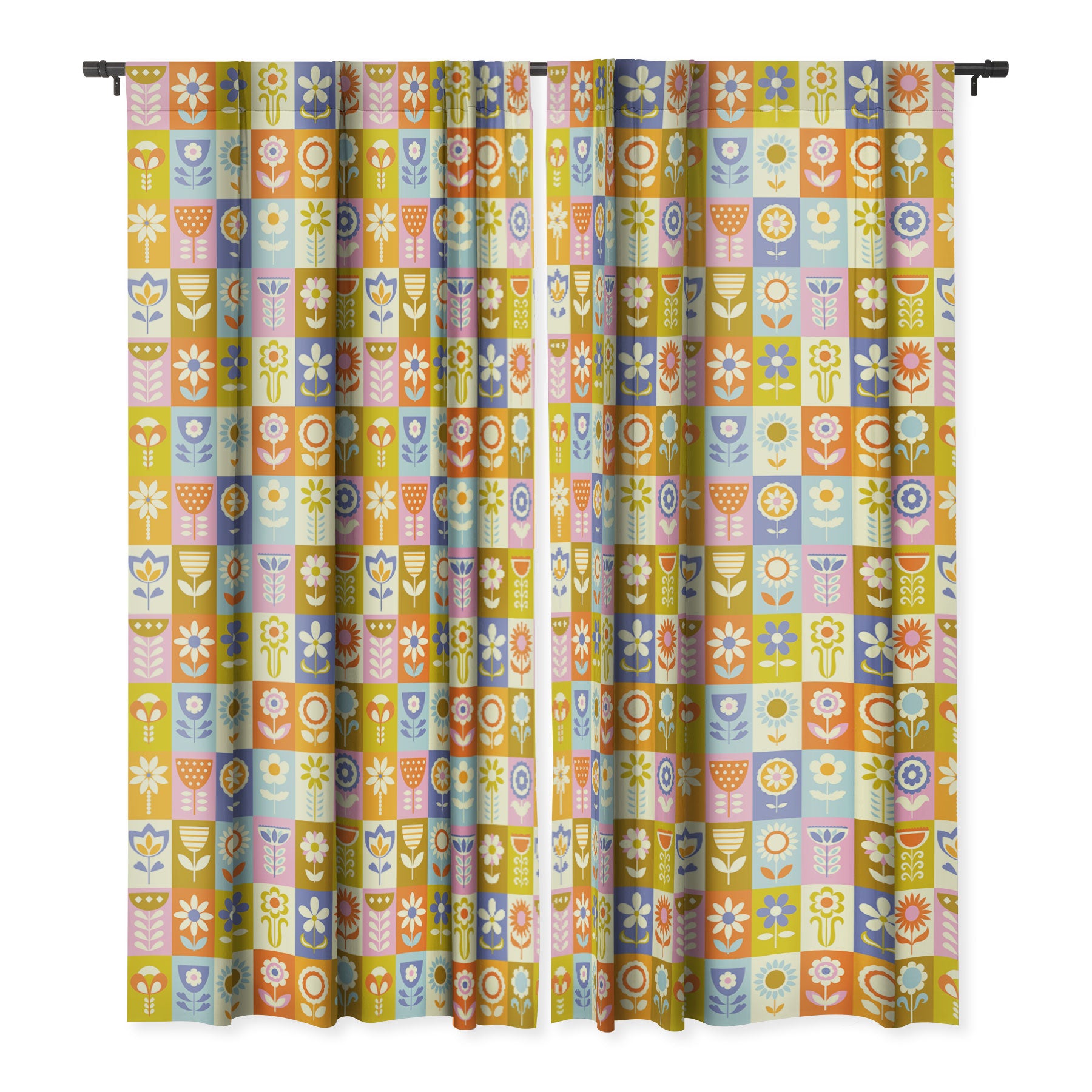 Jenean Morrison 60s Flower Grid Blackout Window Curtain