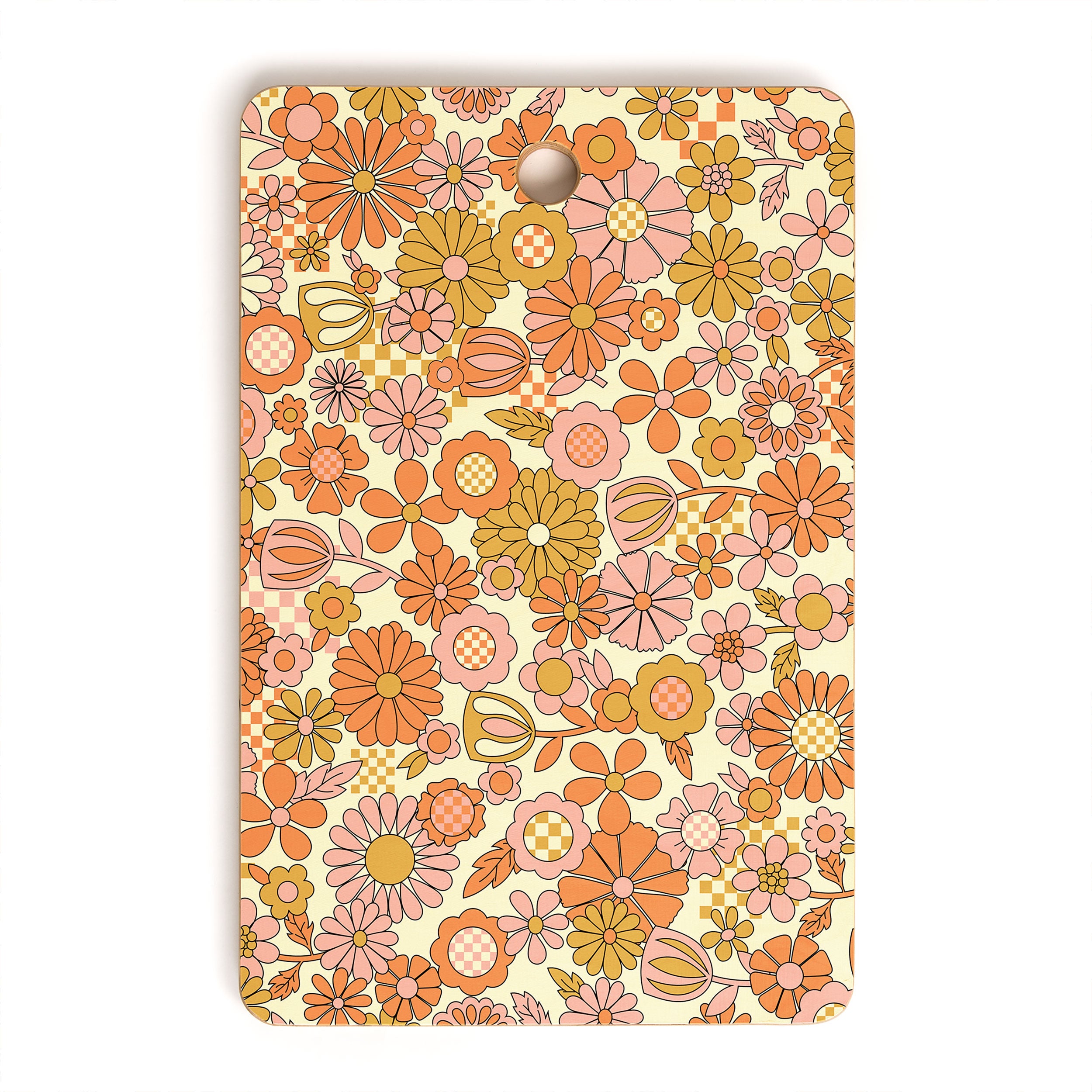 Jenean Morrison Checkered Past in Coral Cutting Board Rectangle