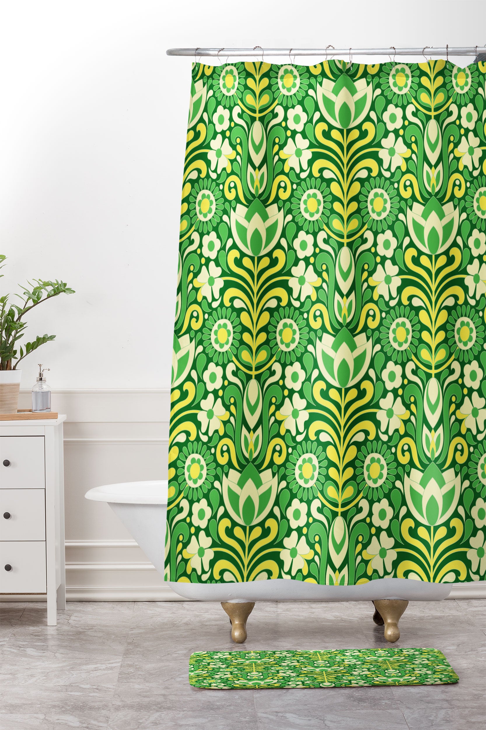 Jenean Morrison Climbing Floral Lemon Lime Shower Curtain And Mat