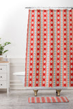 Jenean Morrison Feedsack Stripe Red Shower Curtain And Mat