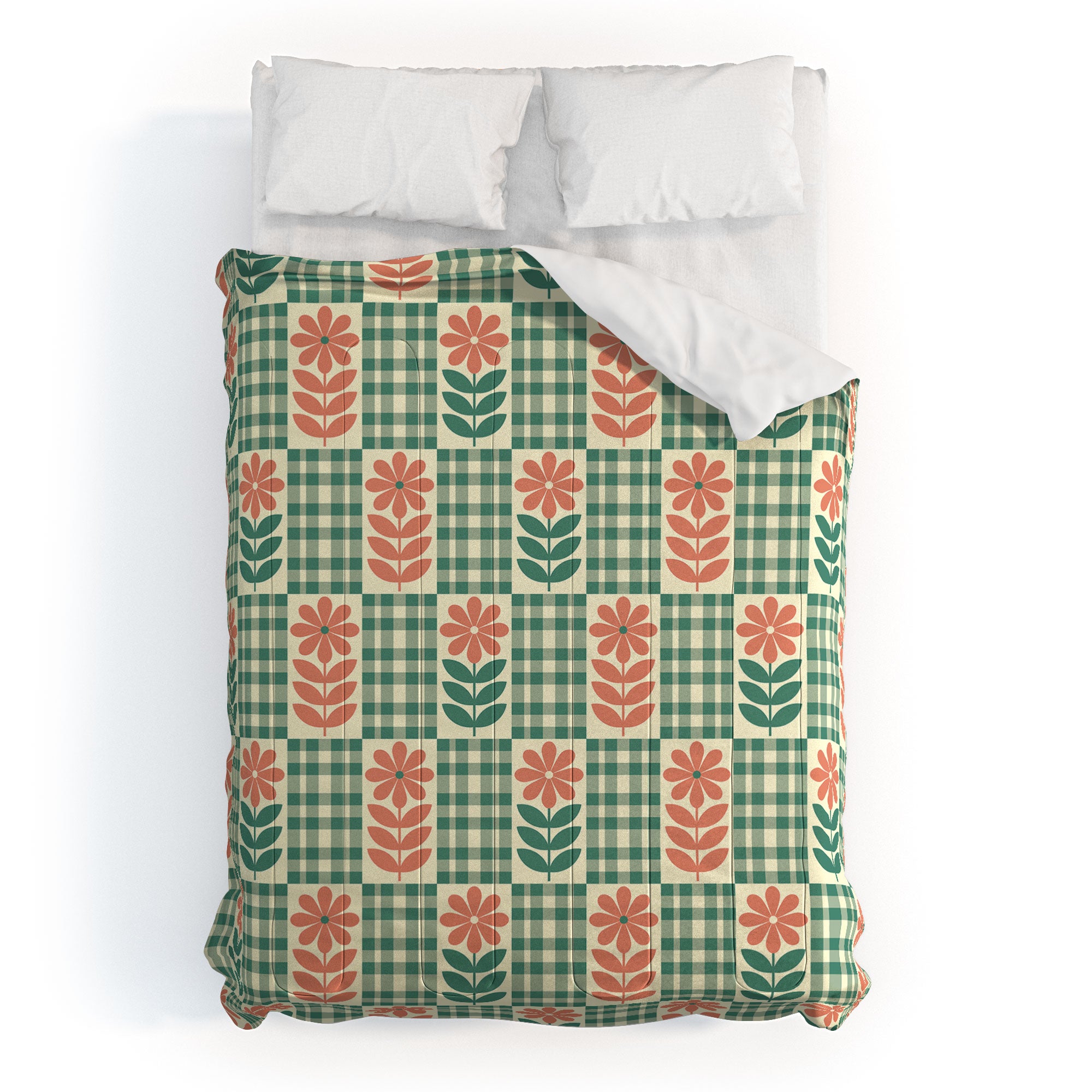 Jenean Morrison Gingham Floral Green Comforter