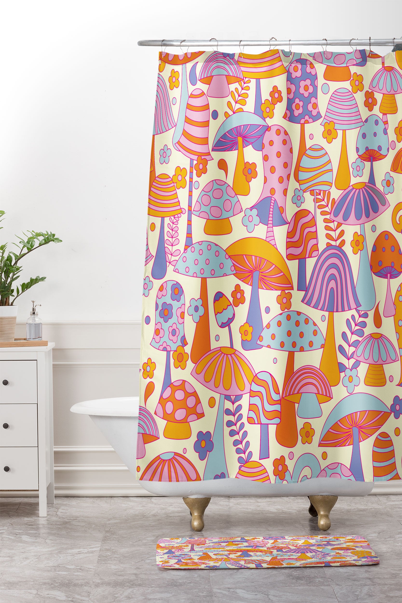 Jenean Morrison Many Mushrooms Lilac Shower Curtain And Mat