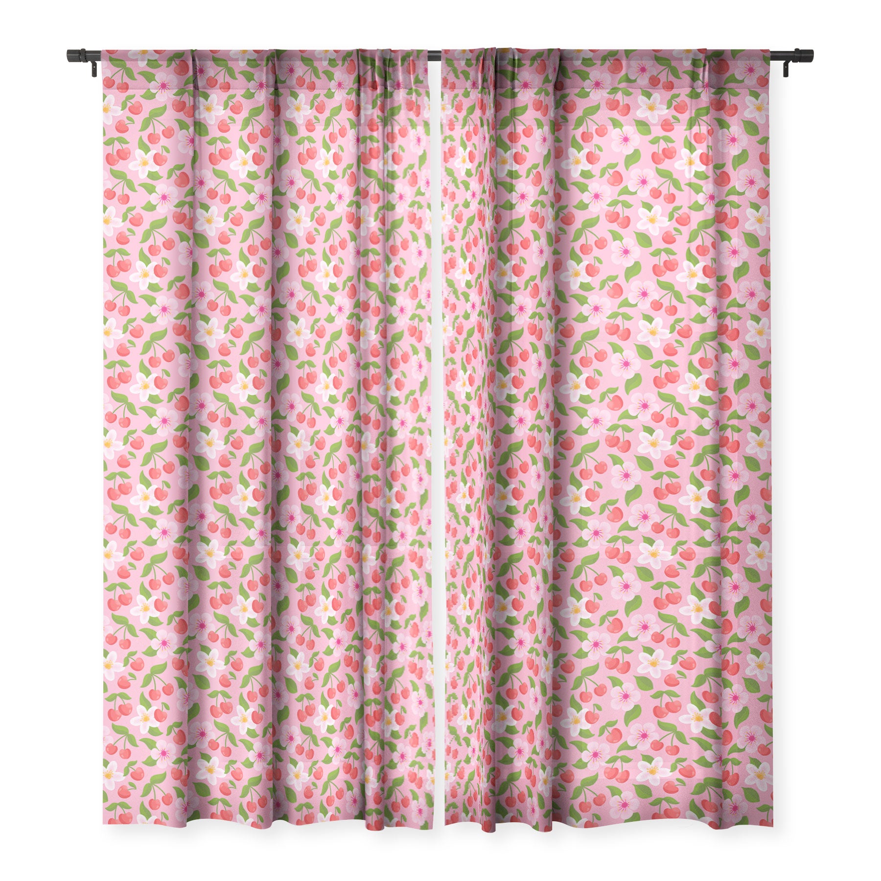 Jessica Molina Cherry Pattern on Pink Sheer Window Curtain