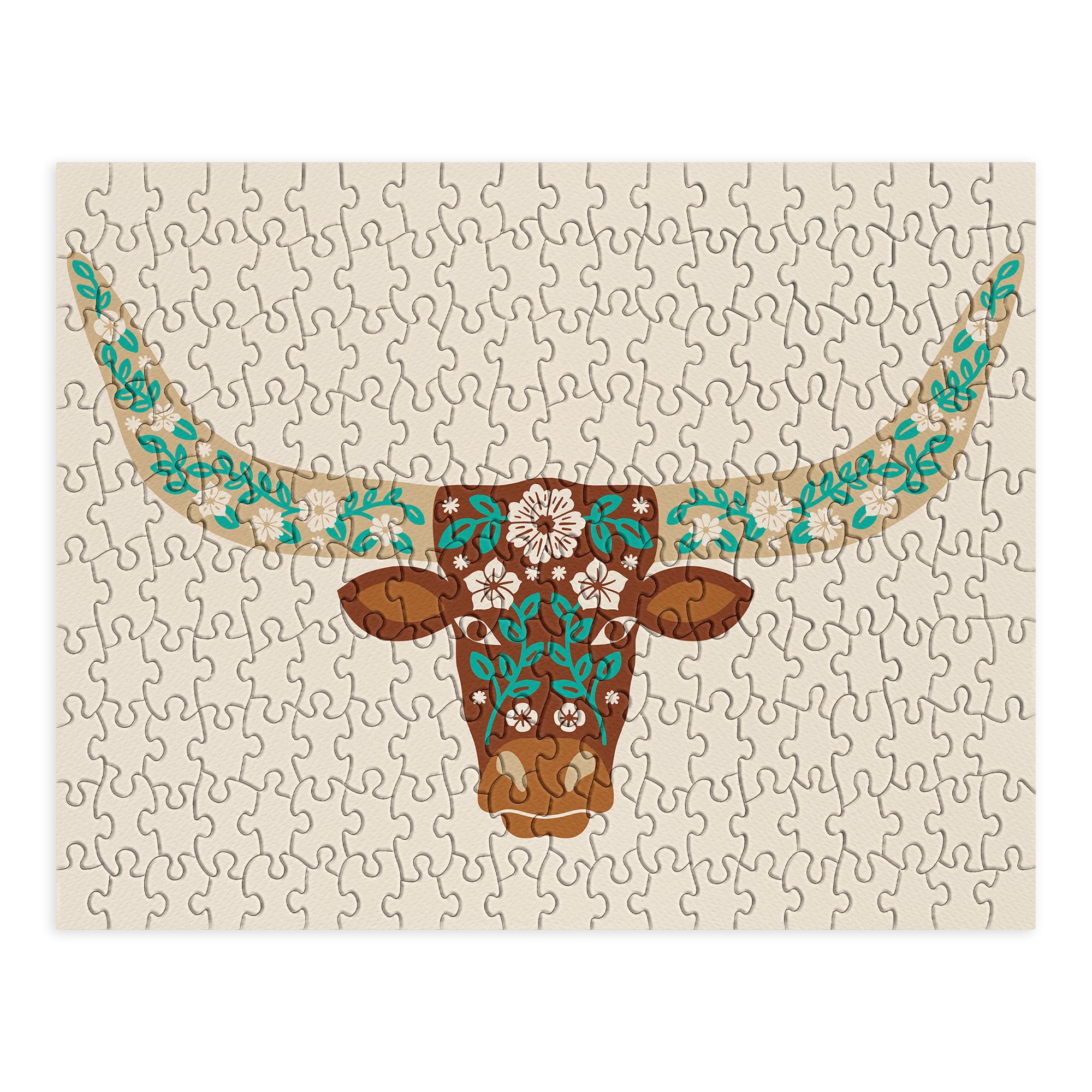 Jessica Molina Floral Longhorn Brown and Turquoise Puzzle