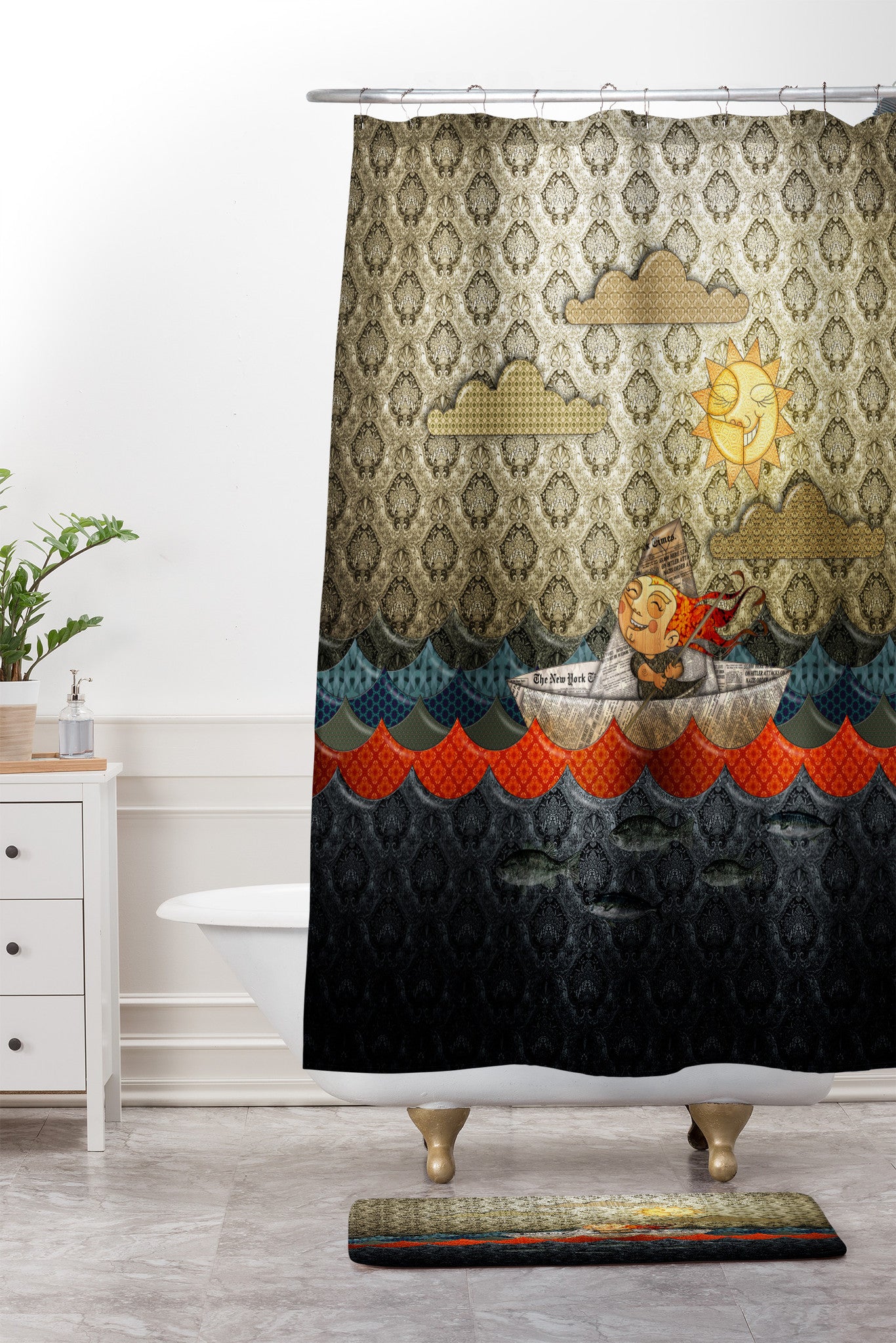 Jose Luis Guerrero Paper Boat Shower Curtain And Mat