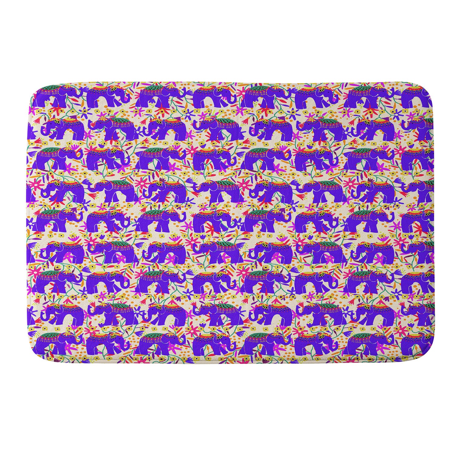 Joy Laforme Elephants Deco On Exotic Florals Memory Foam Bath Mat