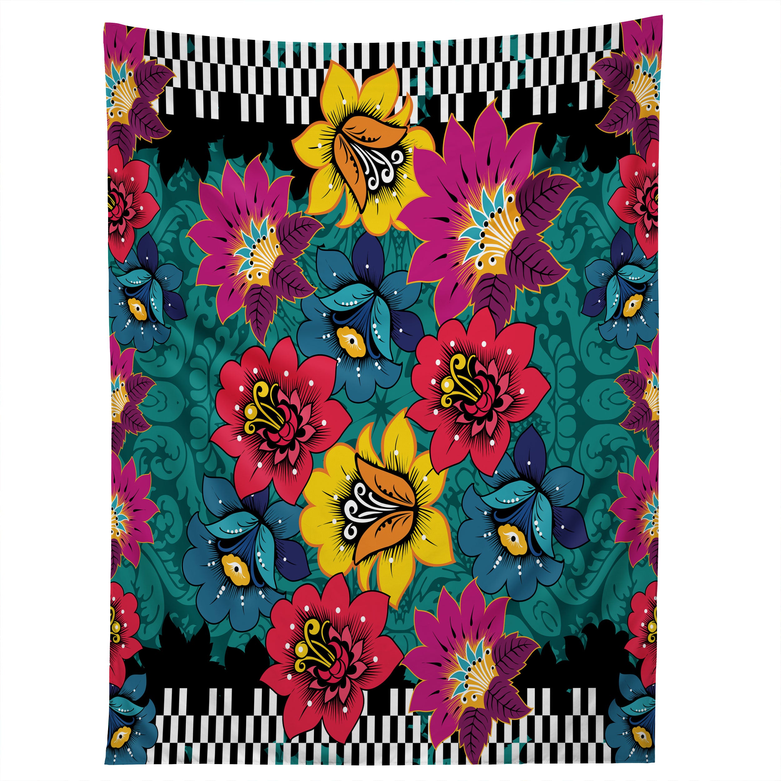 Juliana Curi Black Graphic Flower Tapestry