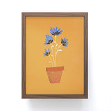 justin shiels blue flowers on orange background Framed Mini Art Print