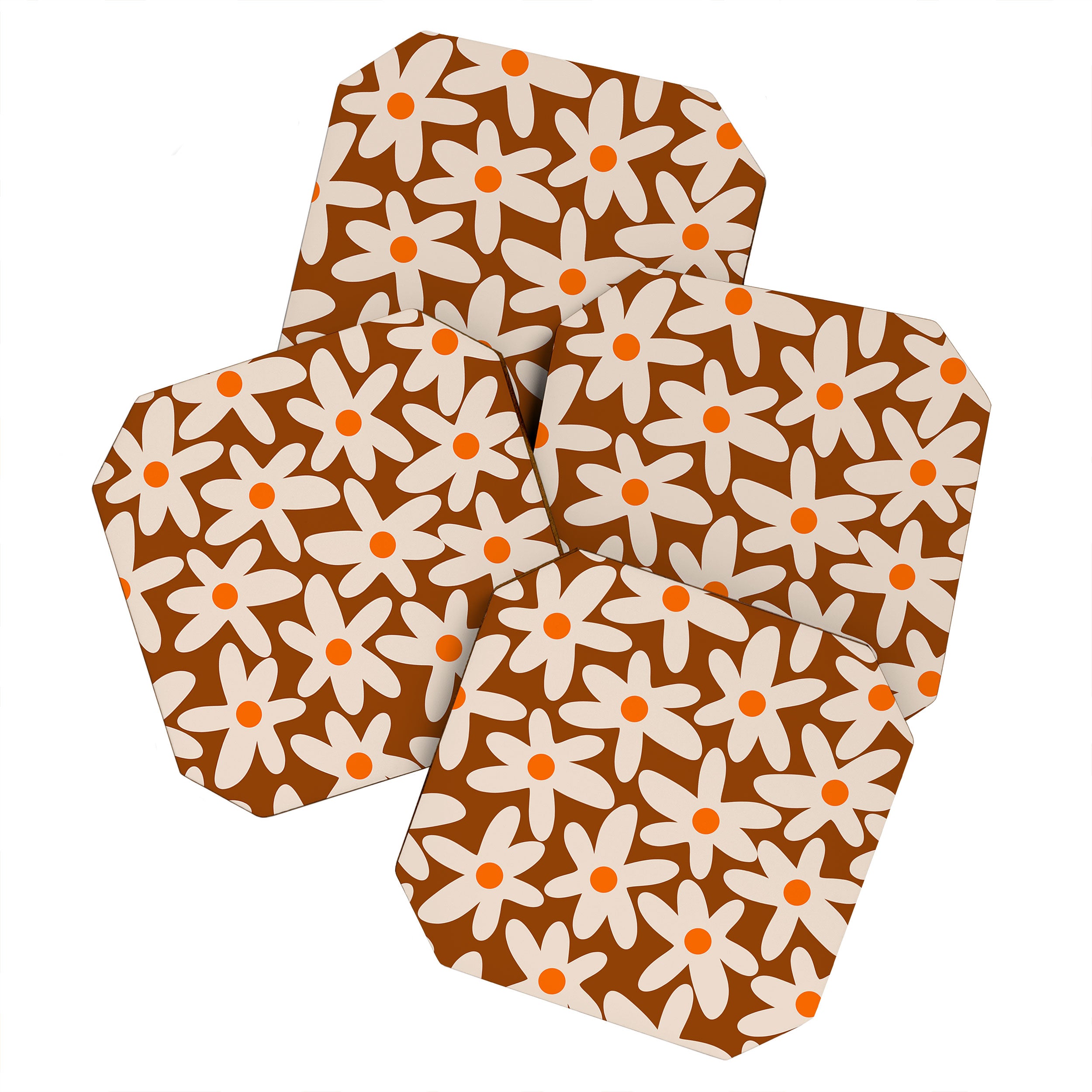 Kierkegaard Design Studio Daisy Time Retro Floral Pattern Coaster Set