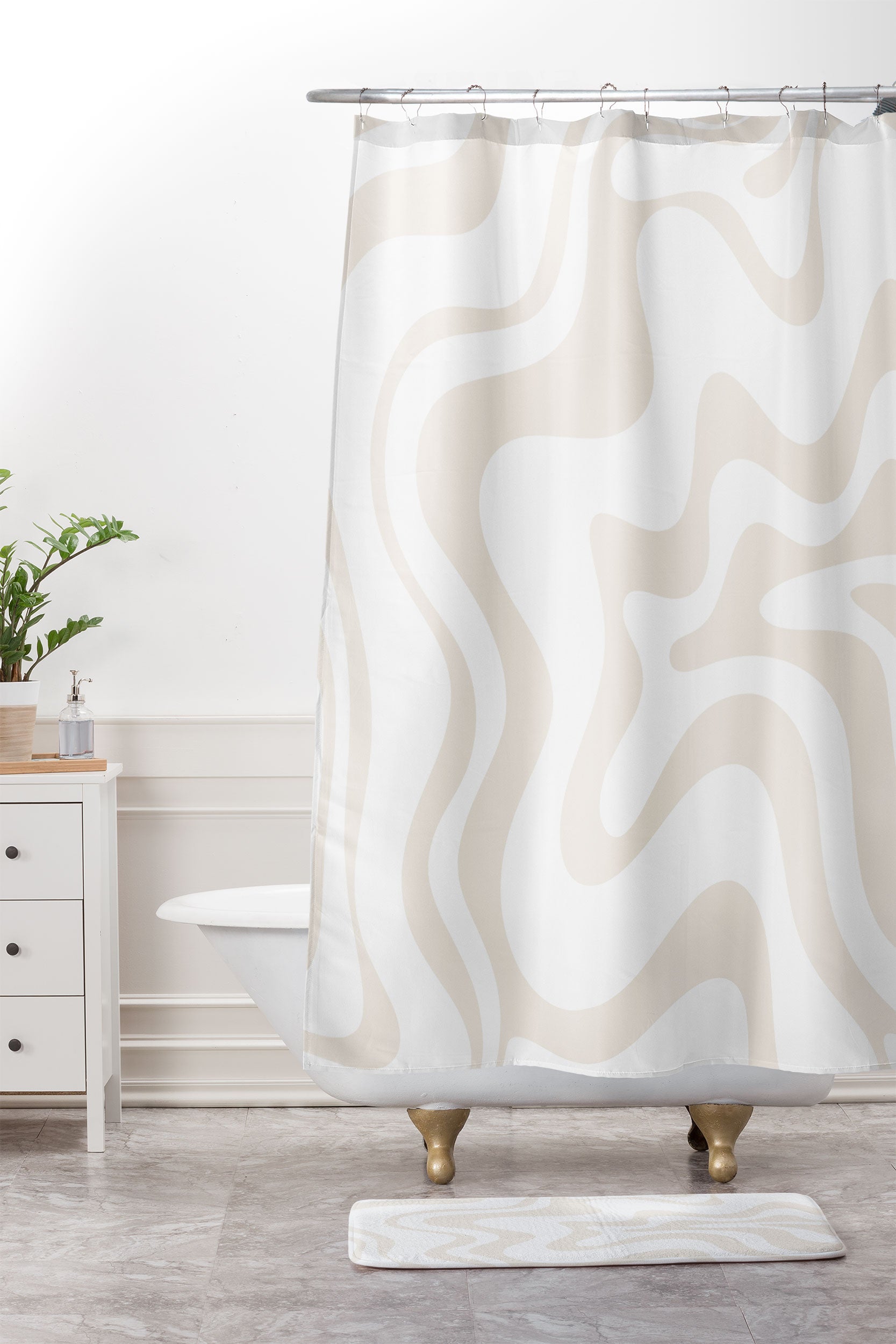 Kierkegaard Design Studio Liquid Swirl Pale Beige and White Shower Curtain And Mat
