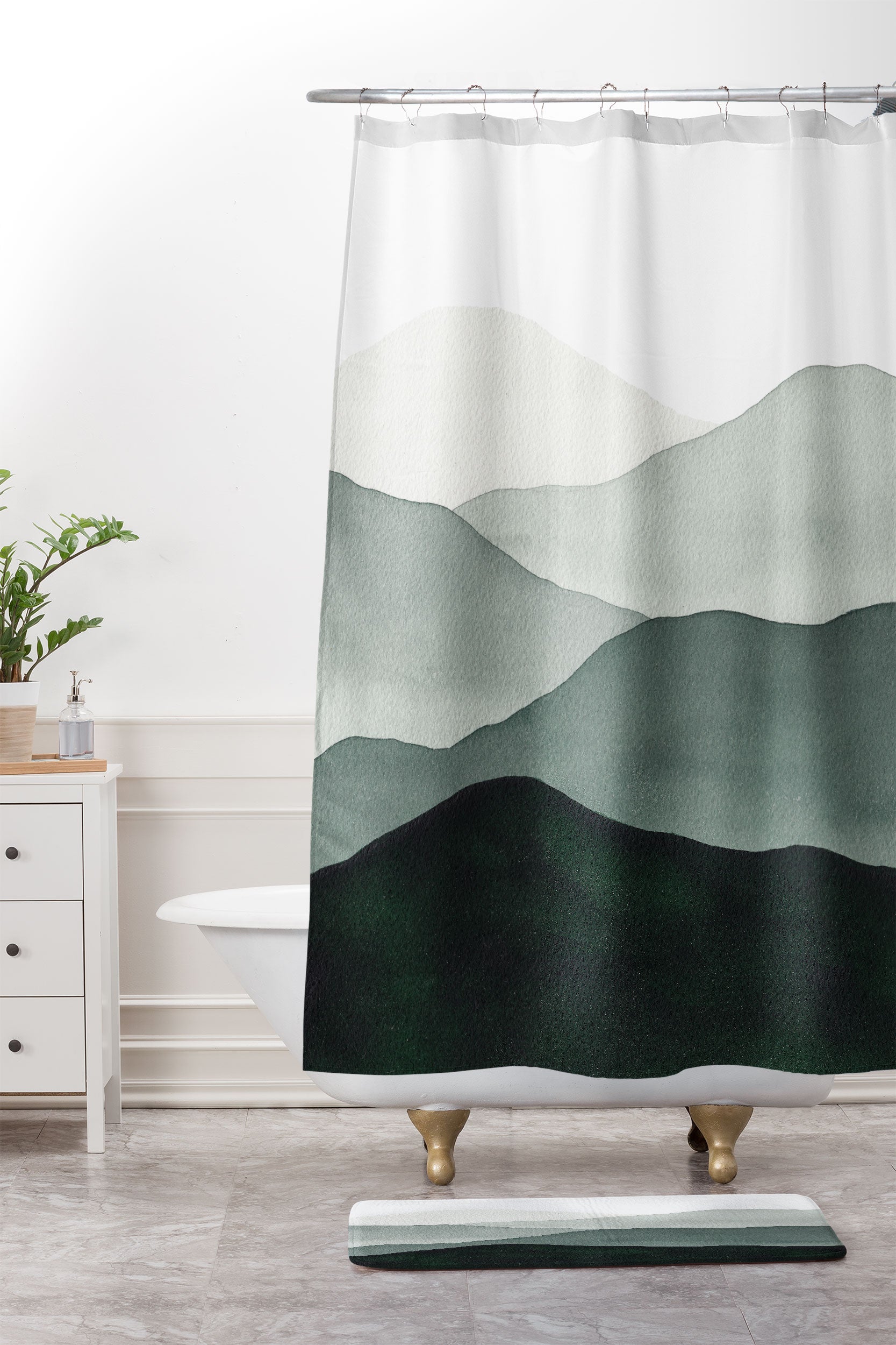 Kris Kivu Green Mountains Shower Curtain And Mat