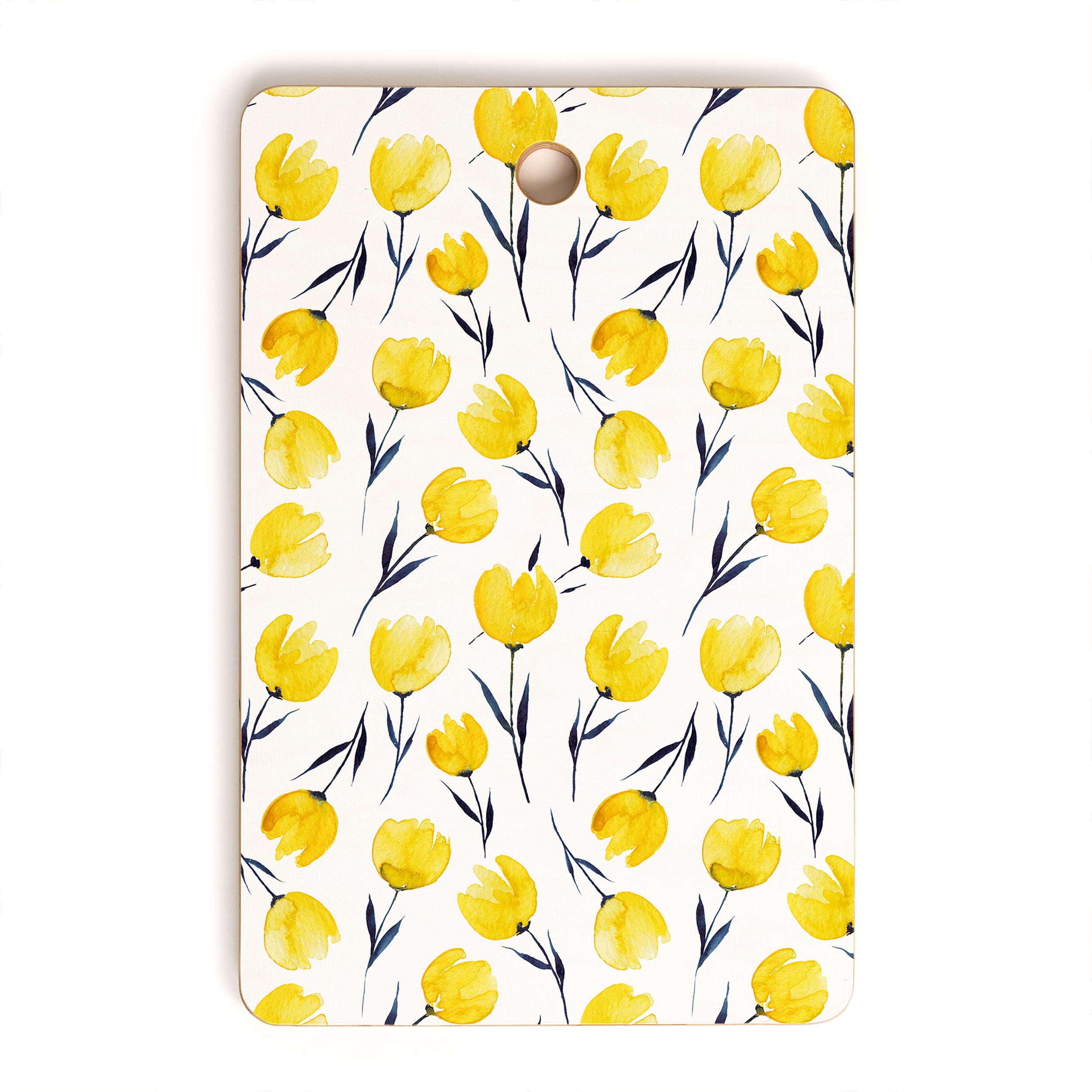 Kris Kivu Yellow Tulips Watercolour Pattern Cutting Board Rectangle