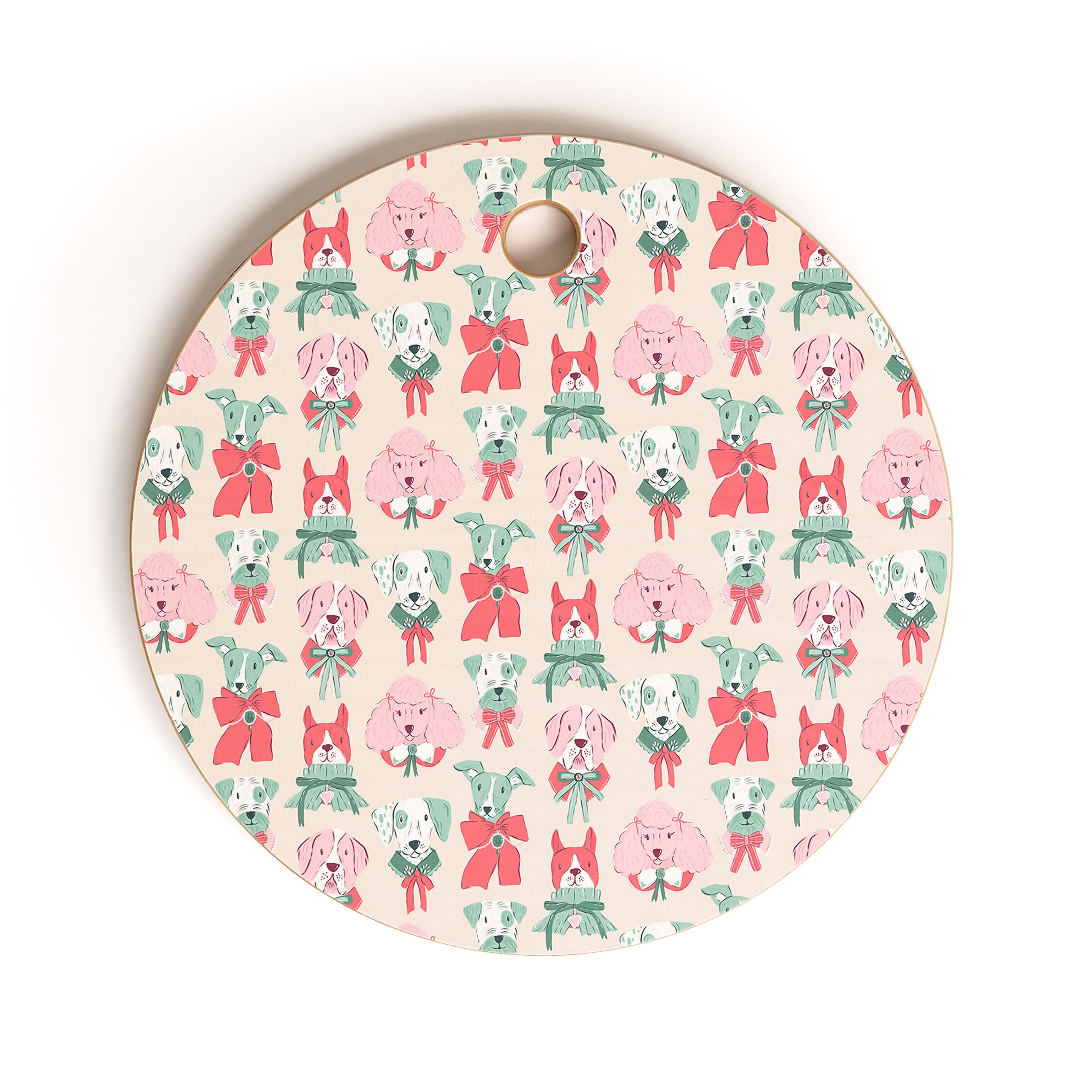 KrissyMast Christmas Dogs Portrait Cutting Board Round