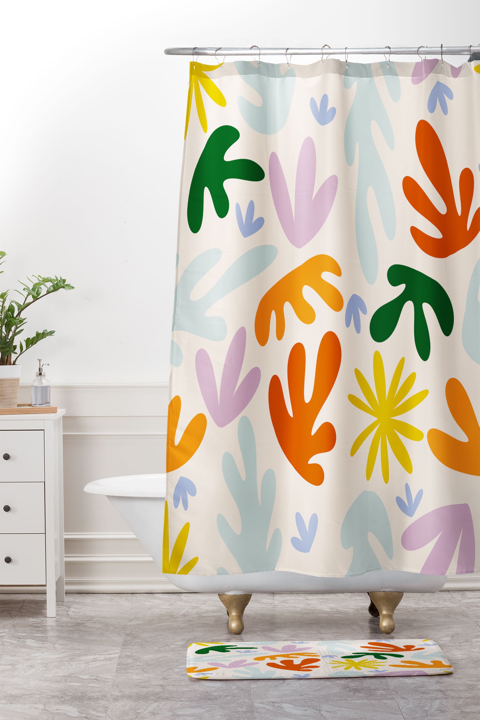 Lane and Lucia Rainbow Matisse Pattern Shower Curtain And Mat