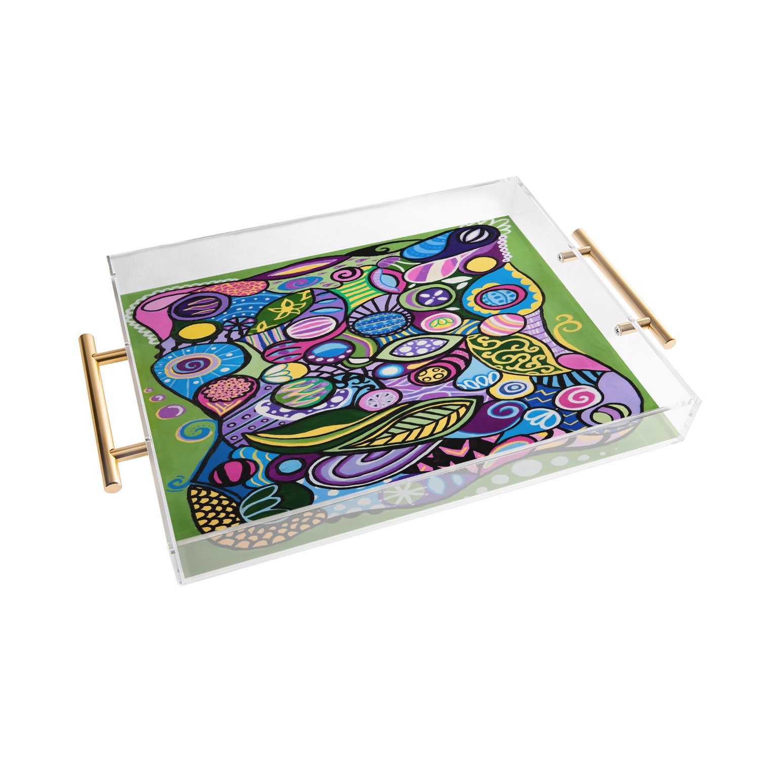 Tray chic. The Deny Designs acrylic trays come in a small and medium-size to accommodate all your countertop organizational needs. Featuring designs from our curated selection on the bottom panel, the acrylic trays can adapt to whatever decor style you love and the see-through side panels give them a modern flair. The medium-sized tray even comes with handles, allowing you to take it around the house for nail supplies or, dare we say, breakfast in bed! And the best part? Every purchase pays the artist who designed it—supporting creativity worldwide.