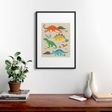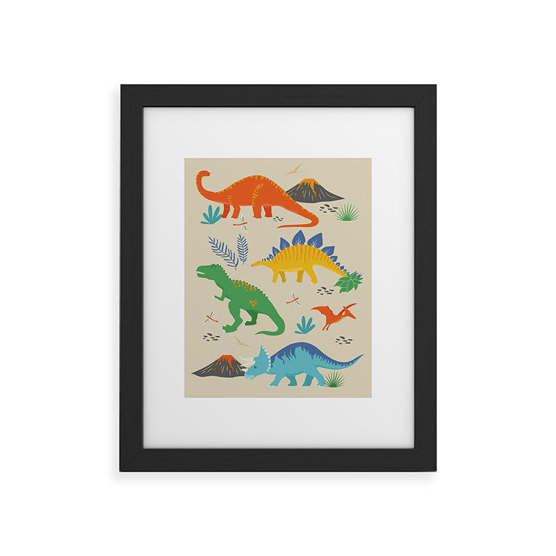 Lathe & Quill Jurassic Dinosaurs in Primary Framed Art Print