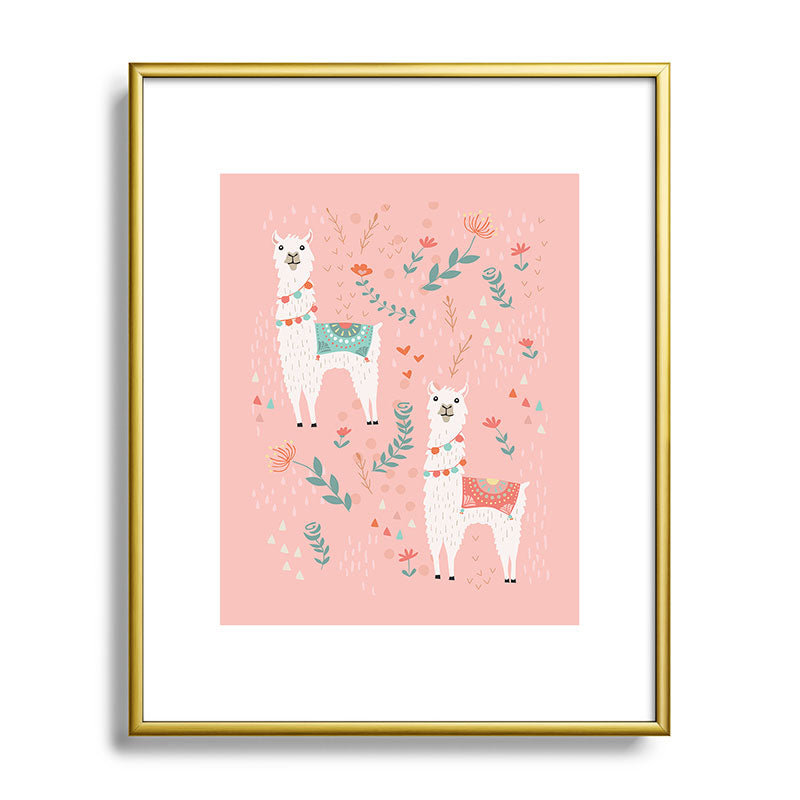 Lathe & Quill Lovely Llama on Pink Metal Framed Art Print