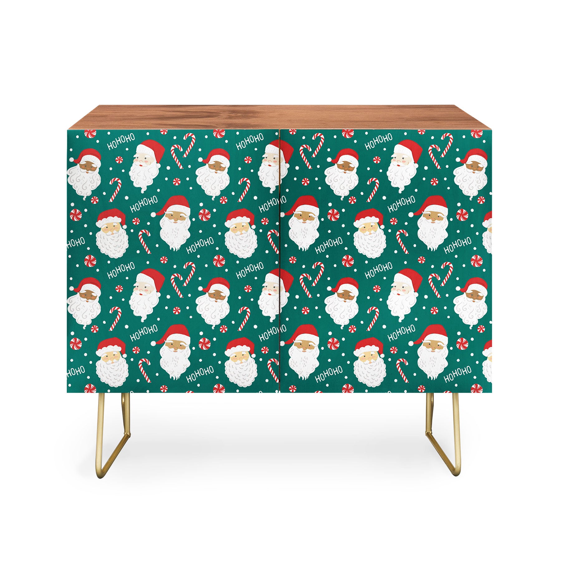 Lathe & Quill Peppermint Santas on Vivid Teal Credenza