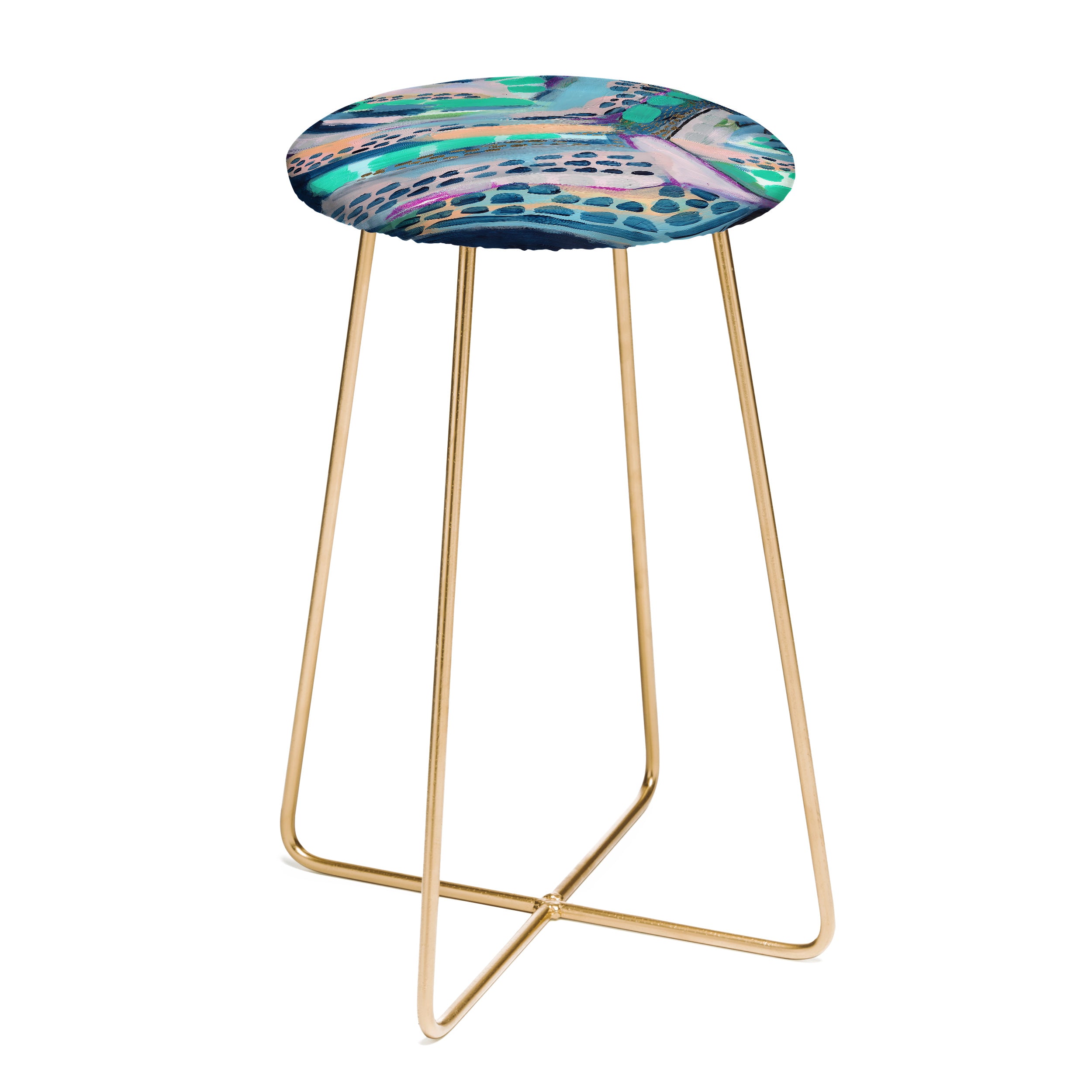 Saddle up, (little) partner. The Deny Designs counter stool uses all the space-conscious, design-forward styling of the bar stool, but with a slightly shorter frame. Sleek, gently curved steel aston legs (available in black or gold) combine with the faux-leather upholstery for a modern yet unassuming stool. Select from our curated array of designs to match whatever your taste may be. And the best part? Every purchase pays the artist who designed it—supporting creativity worldwide.