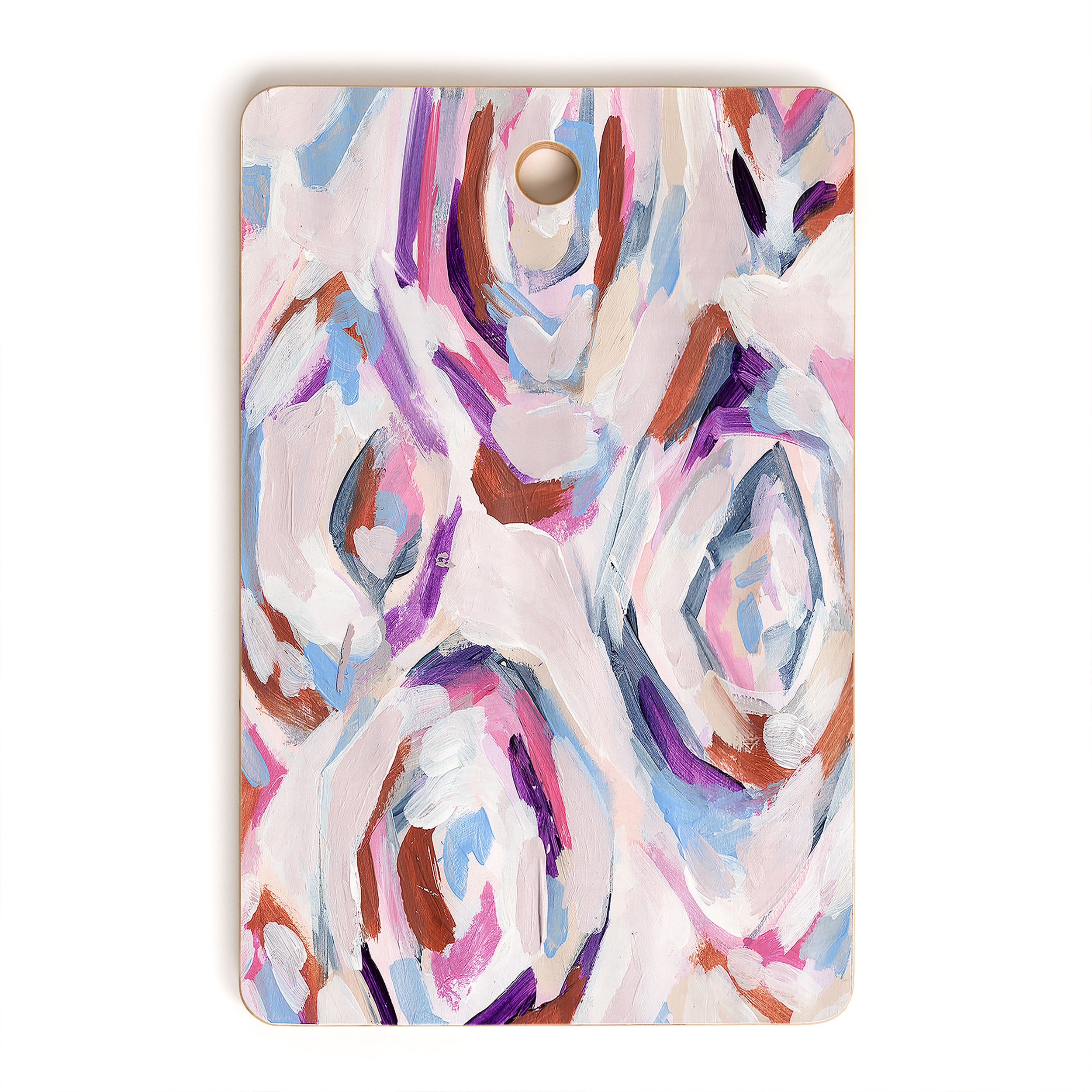 A must-have kitchen accessory any way you slice it. The Deny Designs cutting board is made from bamboo wood that won't look too heavy when integrated into your kitchen decor. Available in array of curated designs, the display side is printed with a satin finish that will pop when displayed on your counter or hung on the wall through the 1" handle. The prep side is a bamboo woodgrain that can be easily washed with a non-abrasive cloth. And the best part? Every purchase pays the artist who designed it—supporting creativity worldwide.