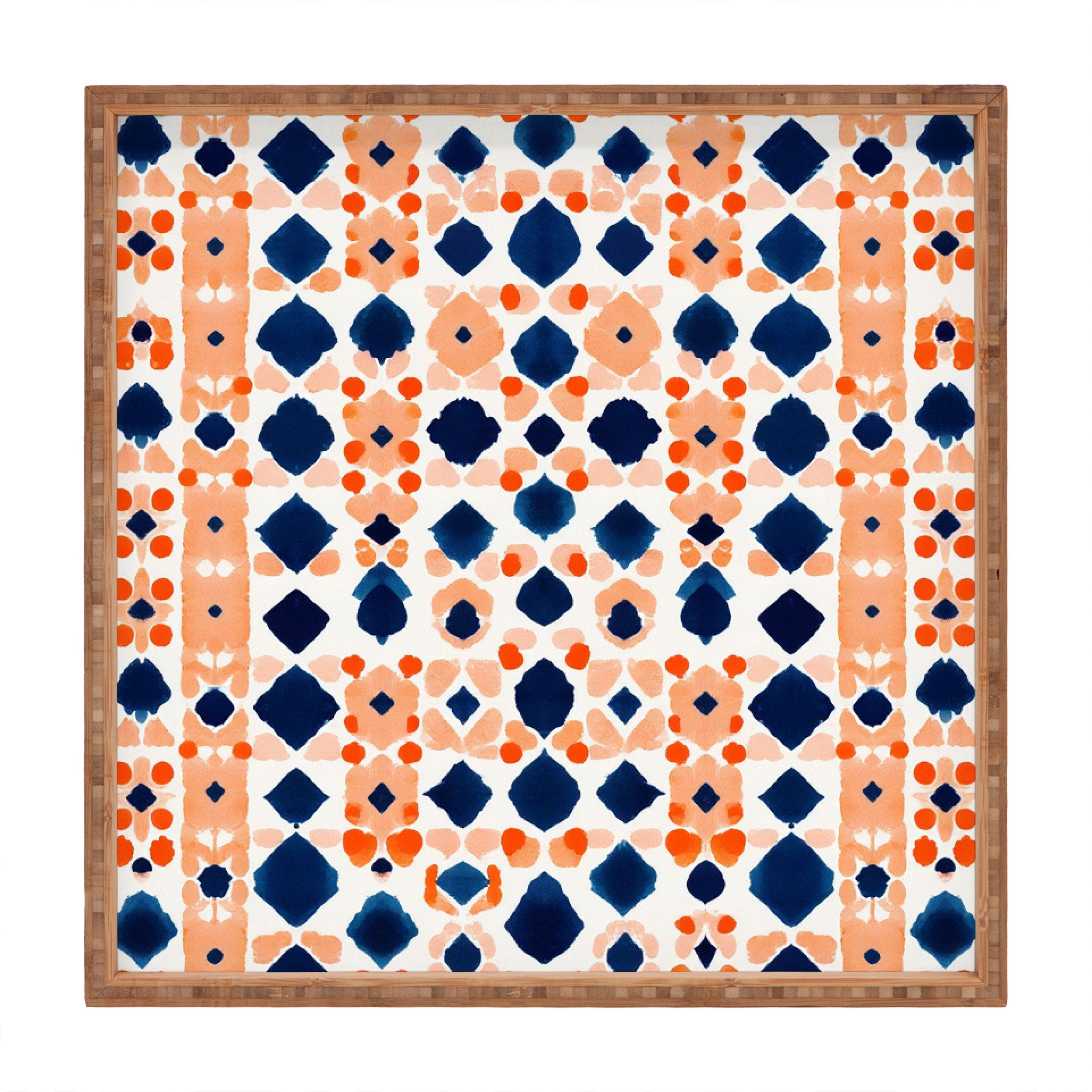 Laura Trevey Navy Orange Checkerboard Square Tray