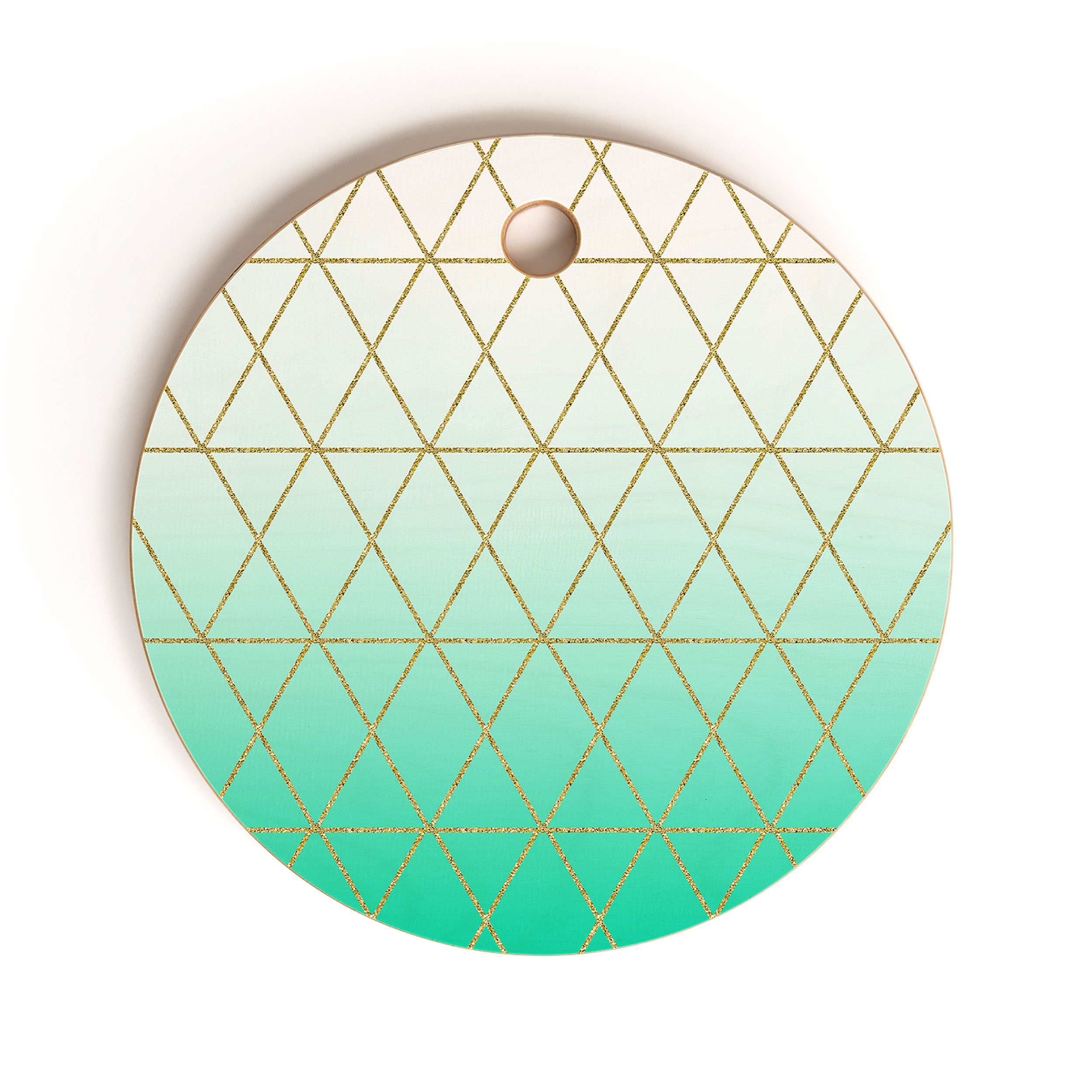 Leah Flores Turquoise and Gold Geometric Cutting Board Round