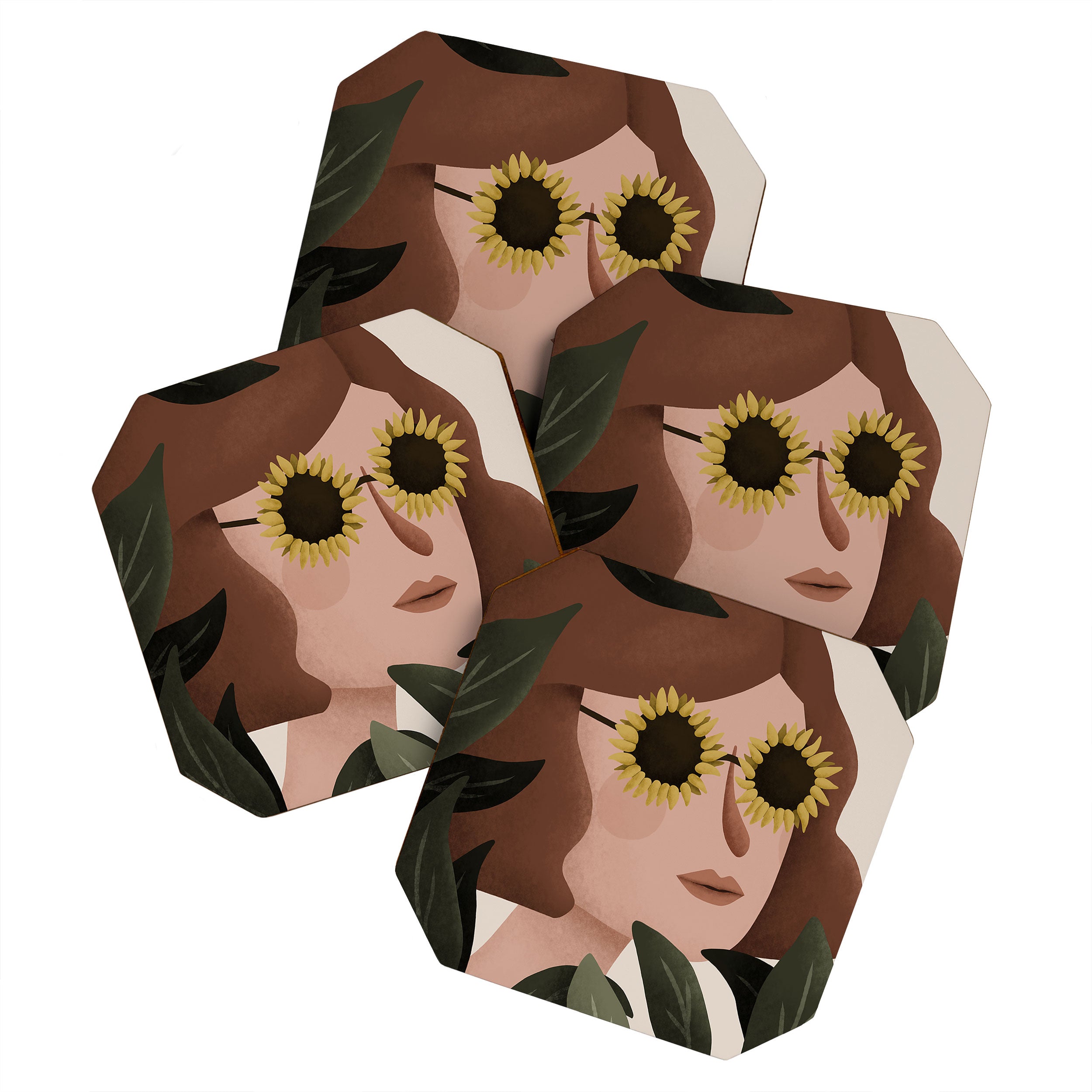 Lebrii Margot Sunflower Portrait Coaster Set