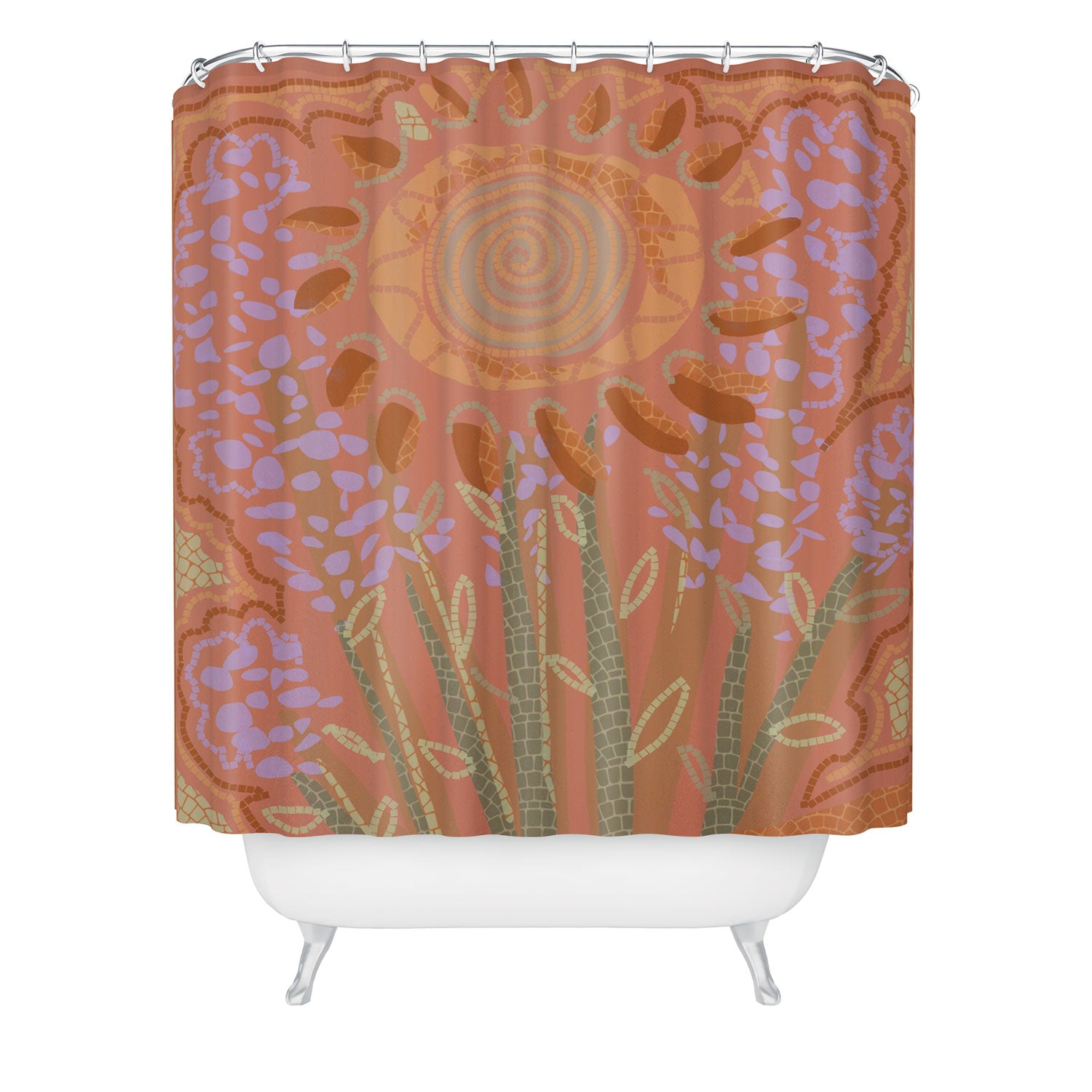 Leeya Makes Noise Fields of Burnt Sienna and Lavender Shower Curtain