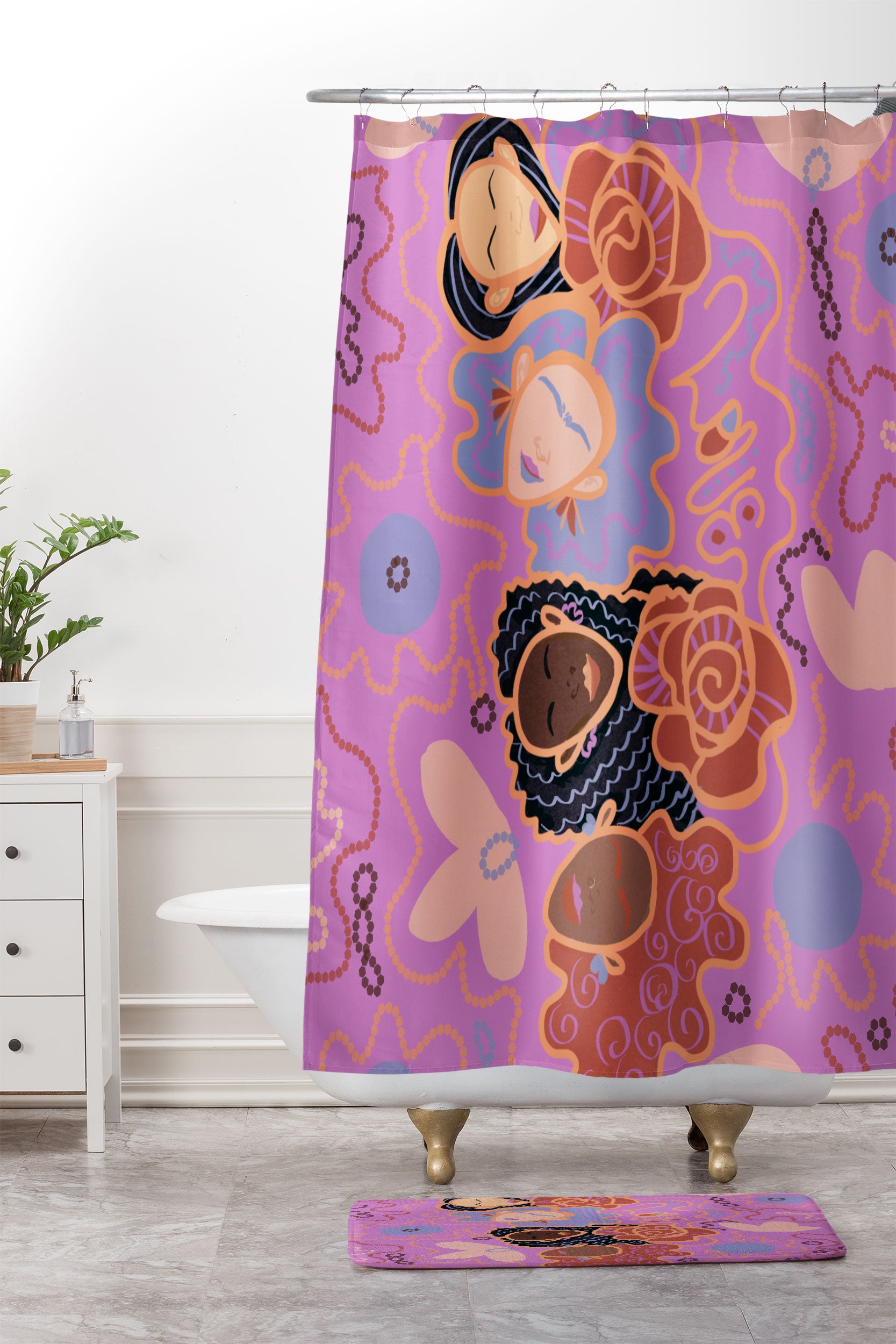 Leeya Makes Noise Pink Ladies of Love Shower Curtain And Mat