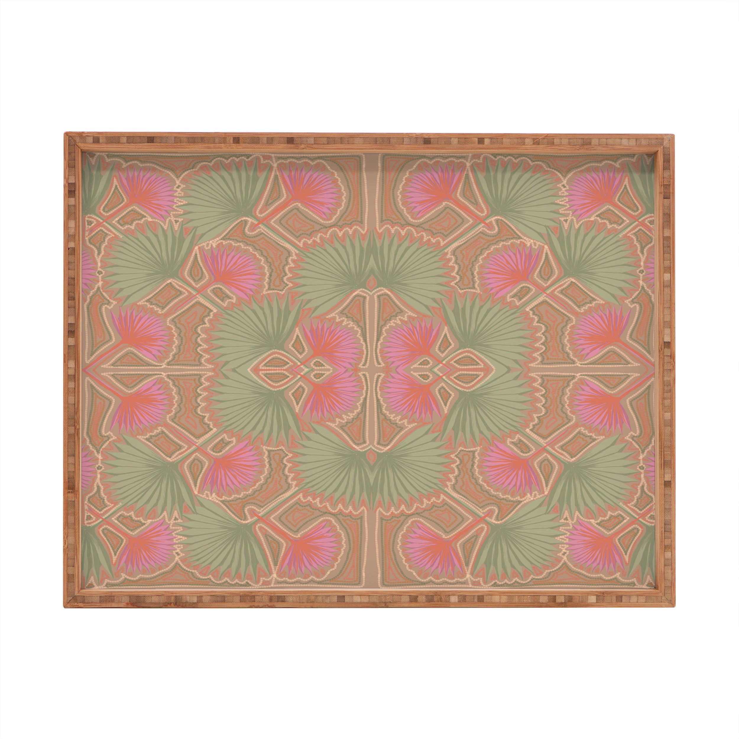 Leeya Makes Noise Sun Palms Dusk Tan Rectangular Tray