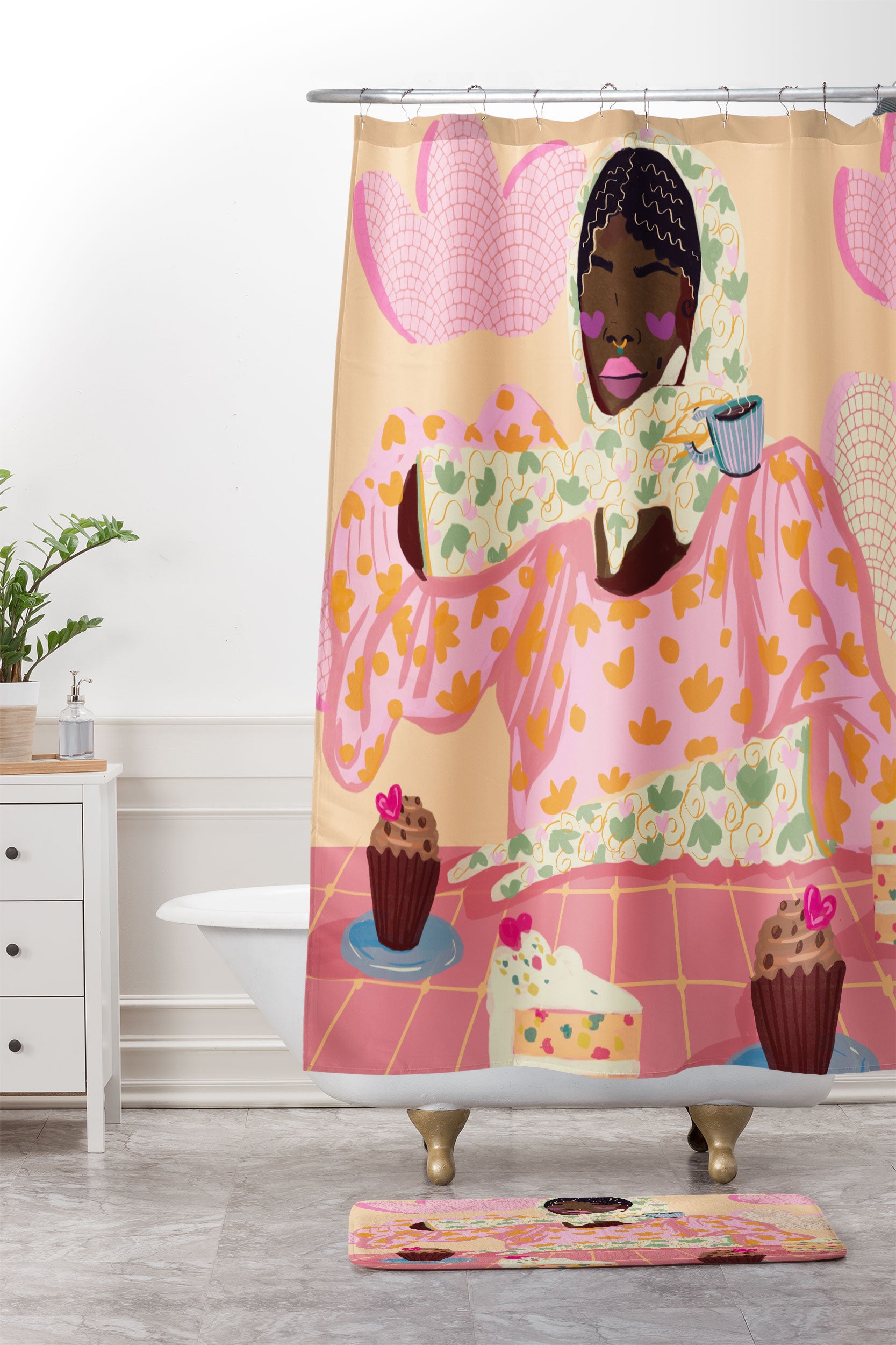 Leeya Makes Noise Sweet and Elegant Shower Curtain And Mat
