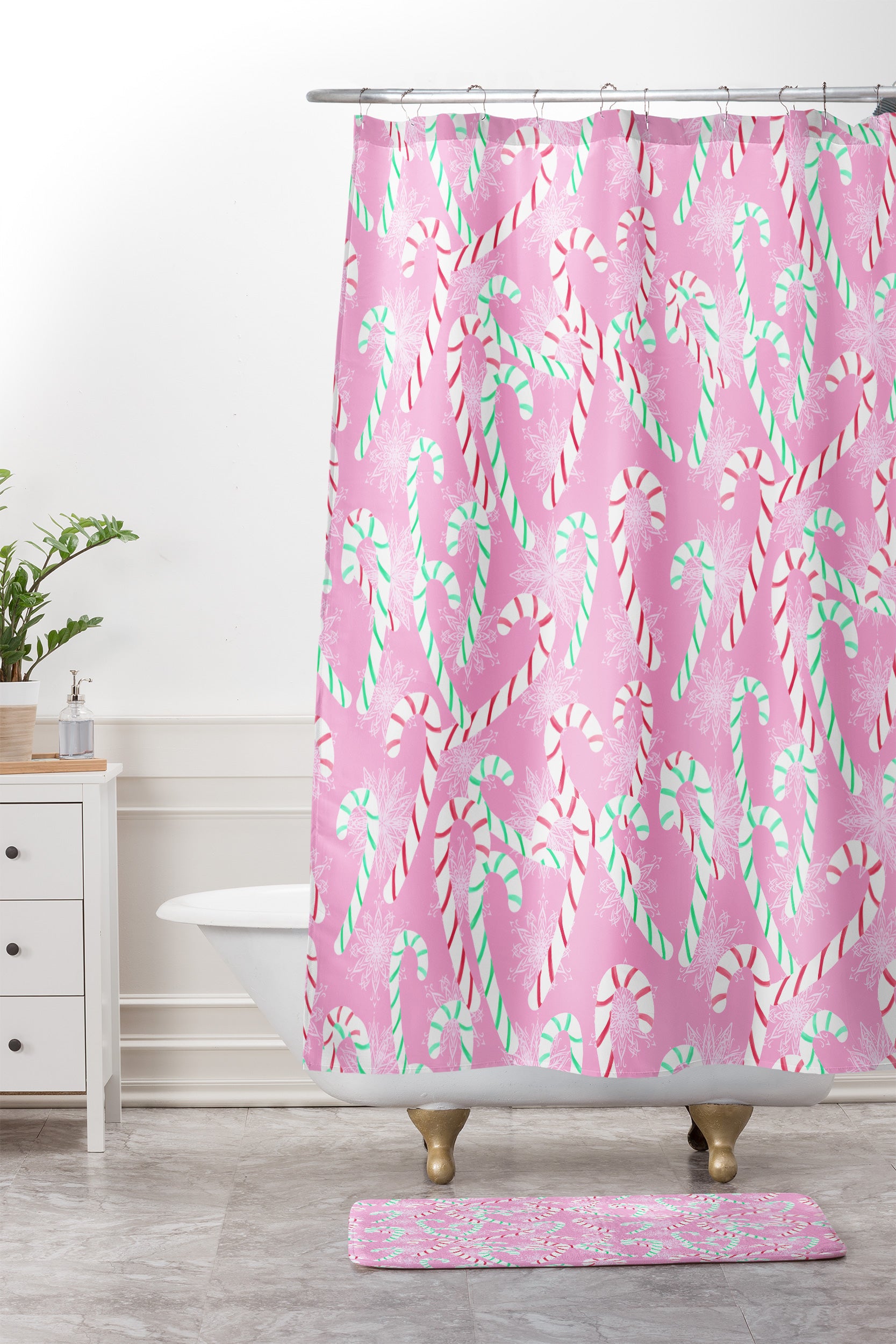Lisa Argyropoulos Frosty Canes Pink Shower Curtain And Mat