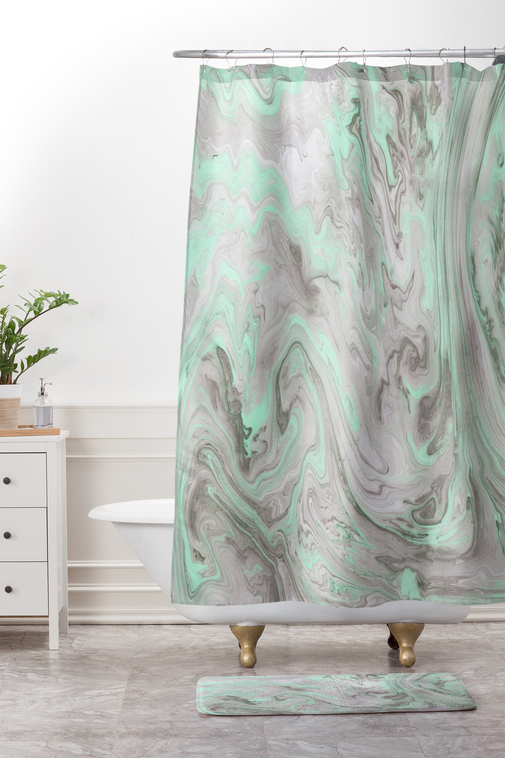 Lisa Argyropoulos Mint and Gray Marble Shower Curtain And Mat