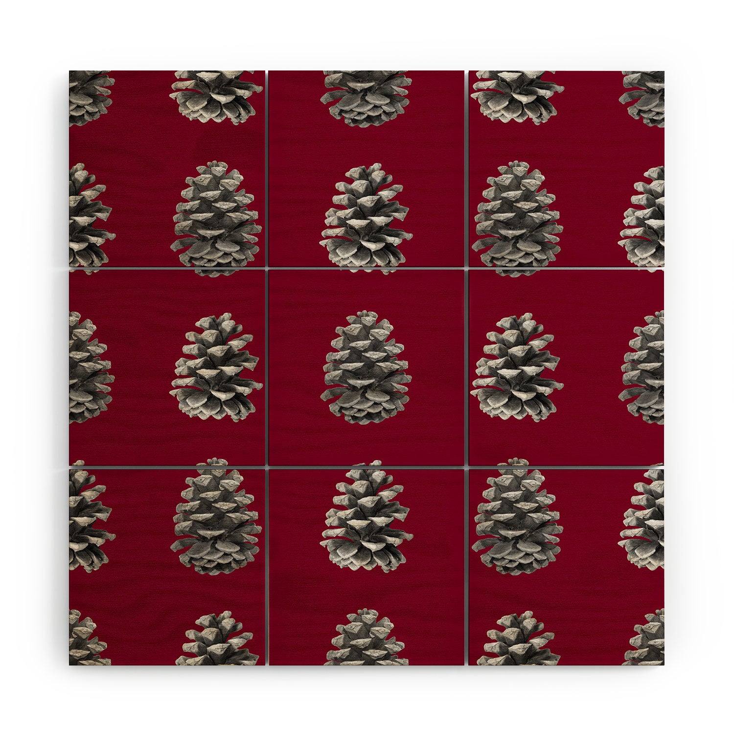 Lisa Argyropoulos Monochrome Pine Cones and Red Wood Wall Mural