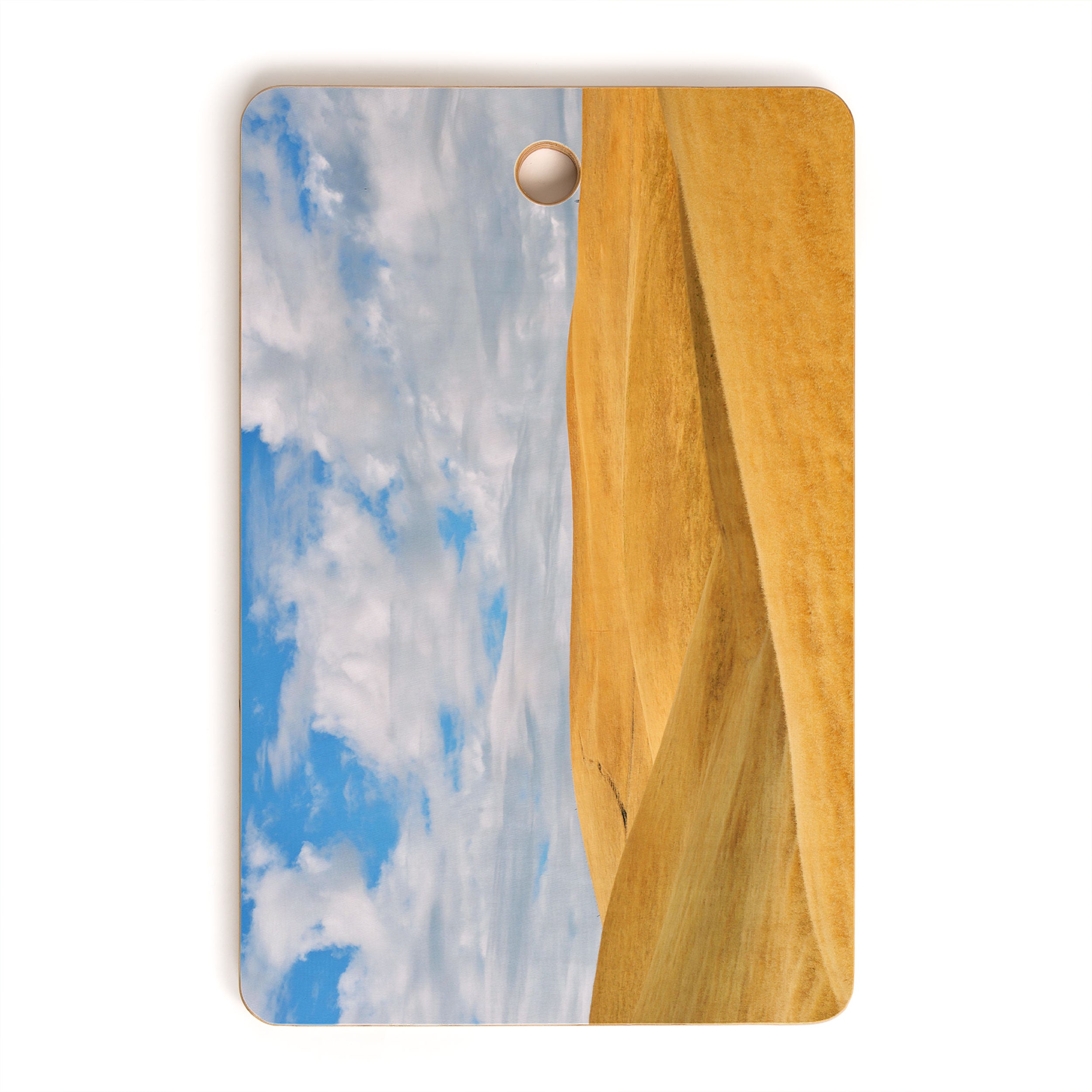 A must-have kitchen accessory any way you slice it. The Deny Designs cutting board is made from bamboo wood that won't look too heavy when integrated into your kitchen decor. Available in array of curated designs, the display side is printed with a satin finish that will pop when displayed on your counter or hung on the wall through the 1" handle. The prep side is a bamboo woodgrain that can be easily washed with a non-abrasive cloth. And the best part? Every purchase pays the artist who designed it—supporting creativity worldwide.