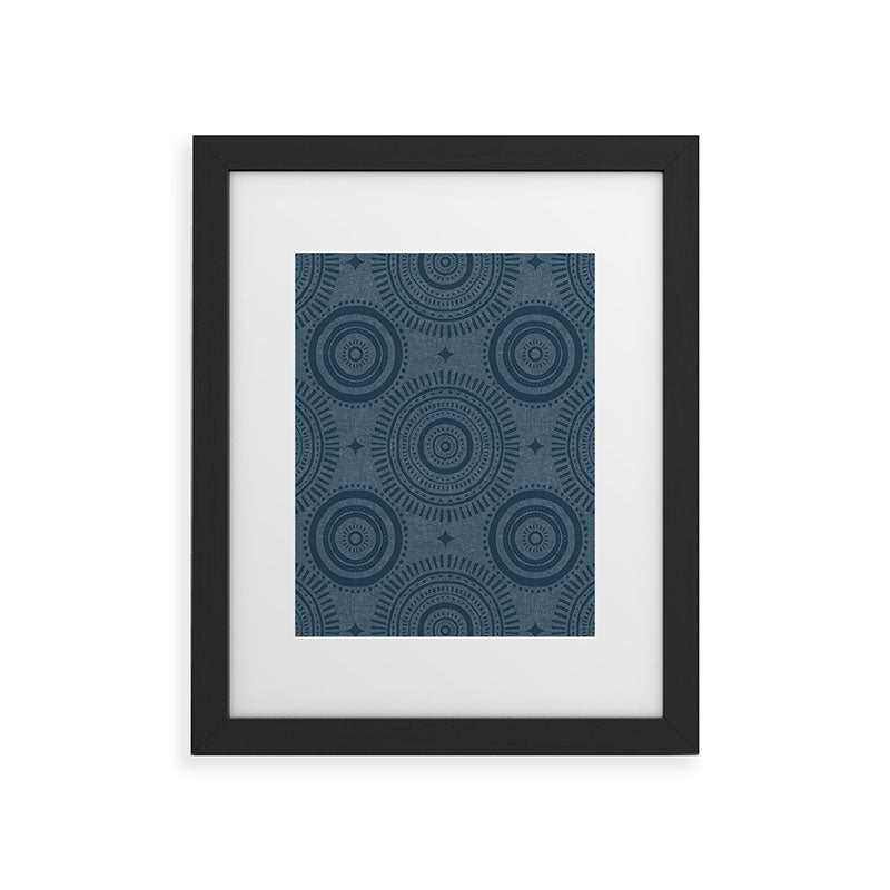 Little Arrow Design Co boho sun and stars dark blue Framed Art Print