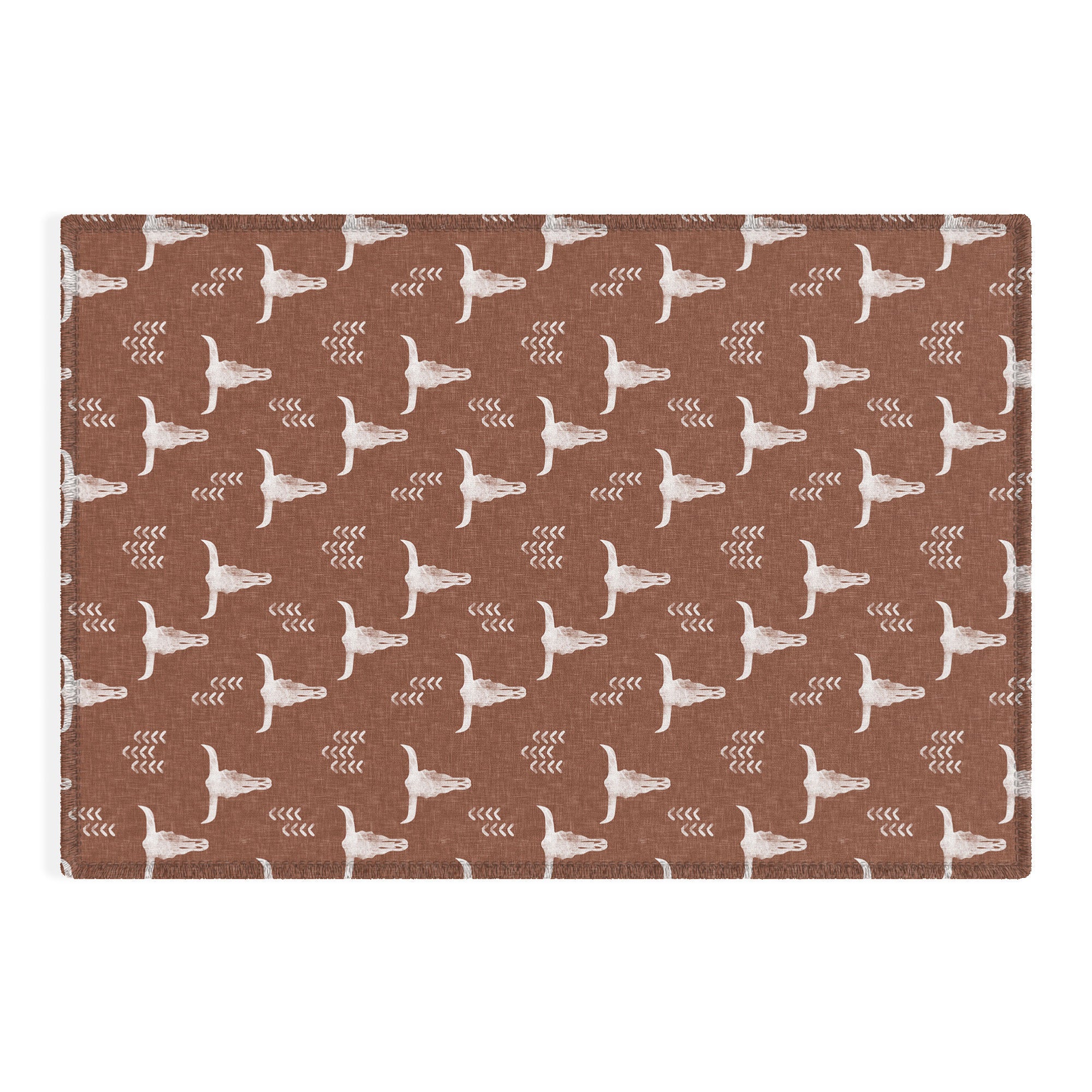 Little Arrow Design Co cow skulls on rust Outdoor Rug