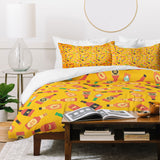 Little Arrow Design Co hot sauce bottles on yellow Duvet Cover