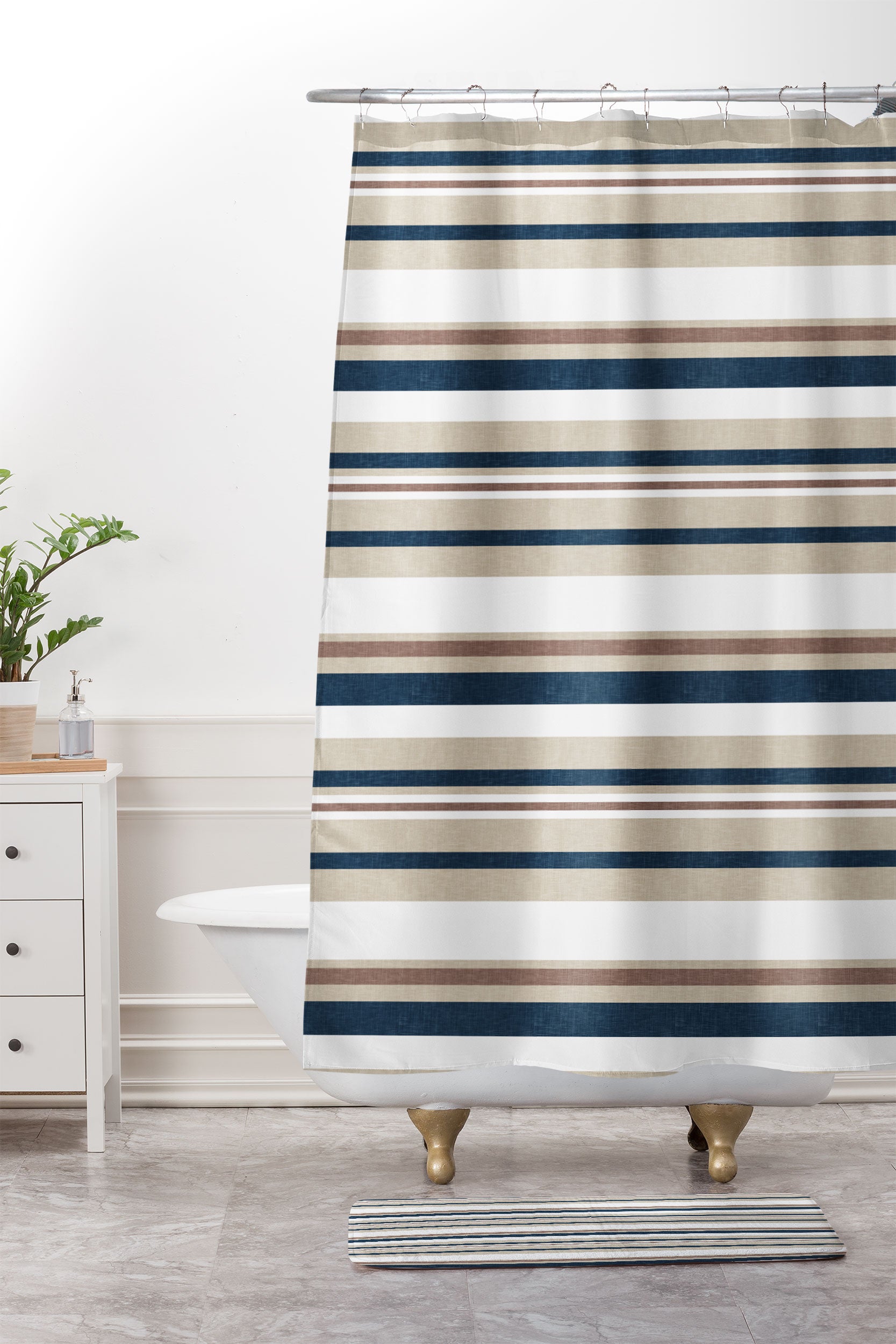 Little Arrow Design Co multi stripes tan blue Shower Curtain And Mat