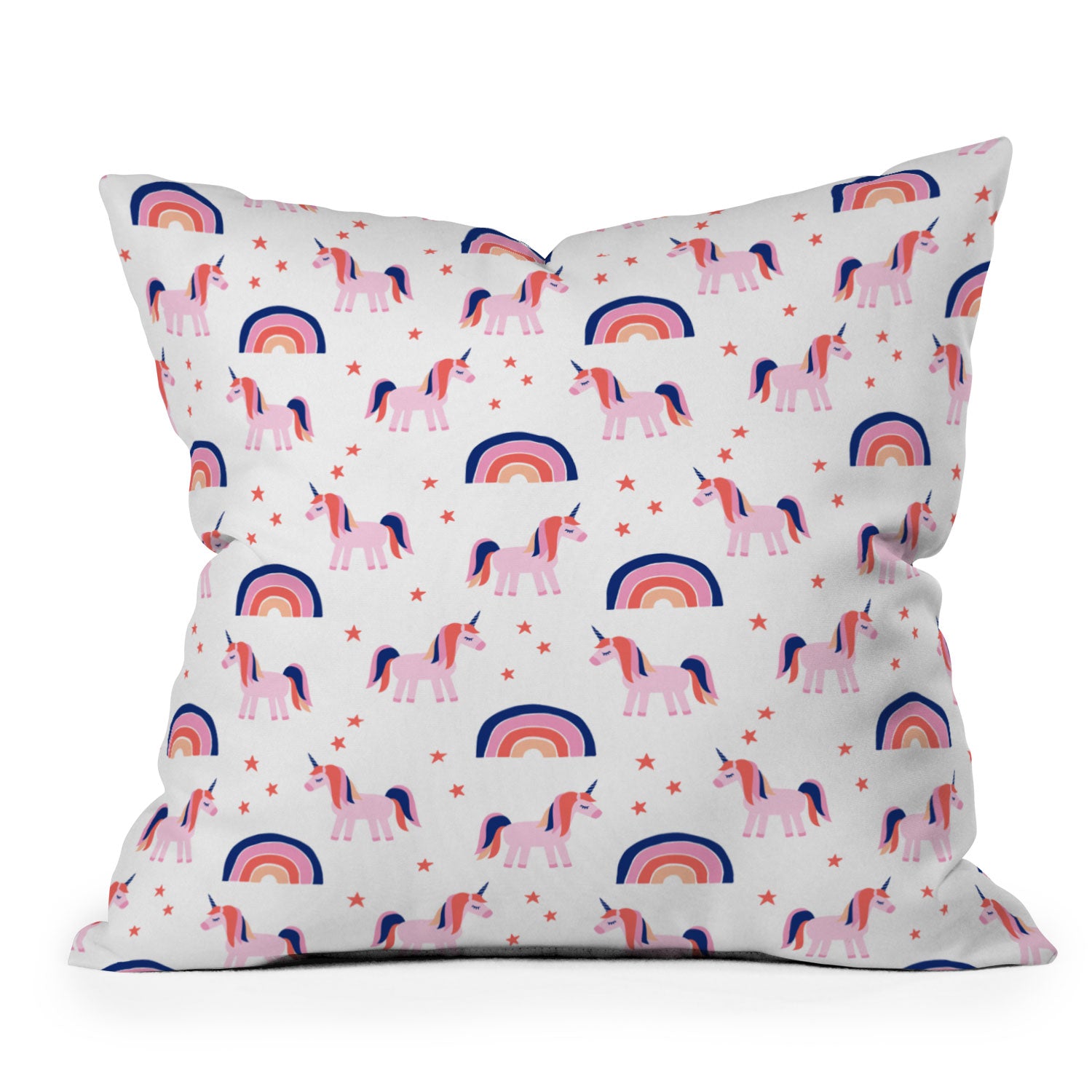 Little Arrow Design Co unicorn dreams in pink and blue Outdoor Throw Pillow