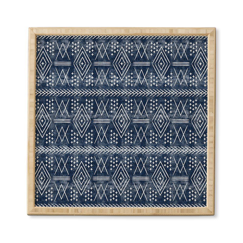 Little Arrow Design Co vintage moroccan on blue Framed Wall Art