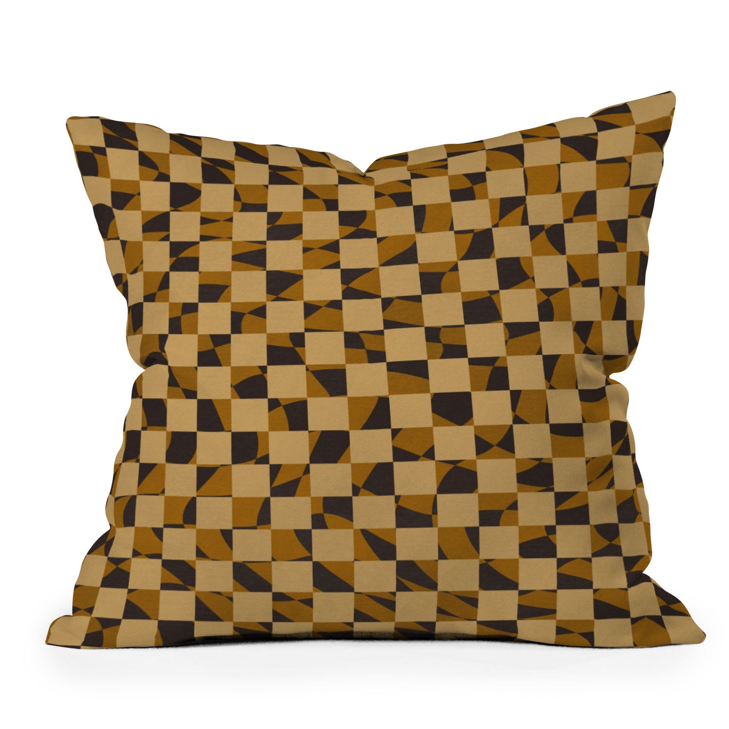 Little Dean Abstract checked in golden och Outdoor Throw Pillow