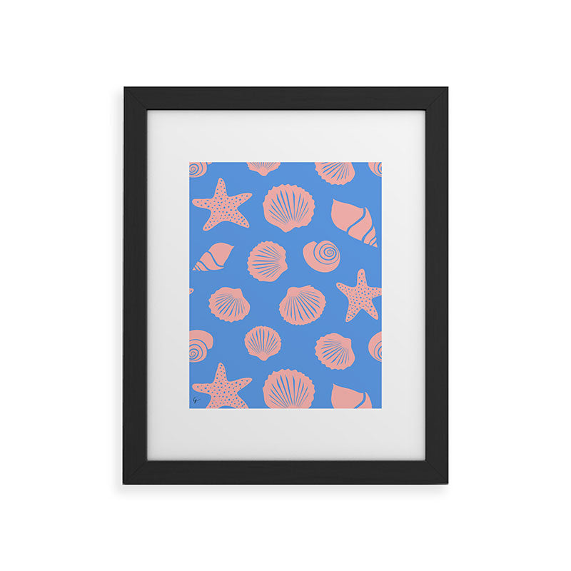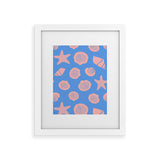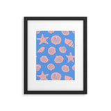 Lyman Creative Co Retro Coastal Shells on Blue Framed Art Print
