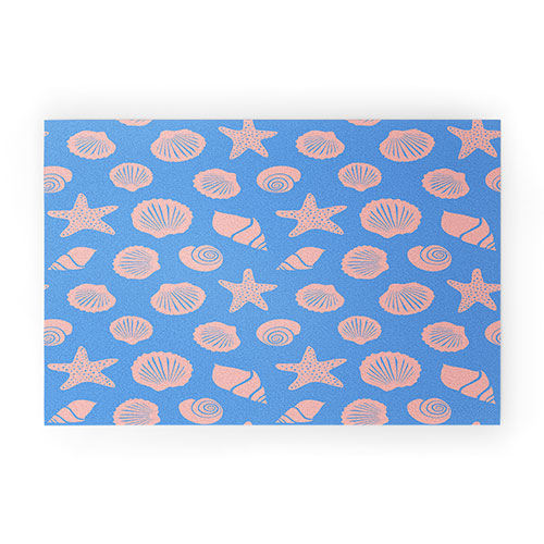 Lyman Creative Co Retro Coastal Shells on Blue Welcome Mat
