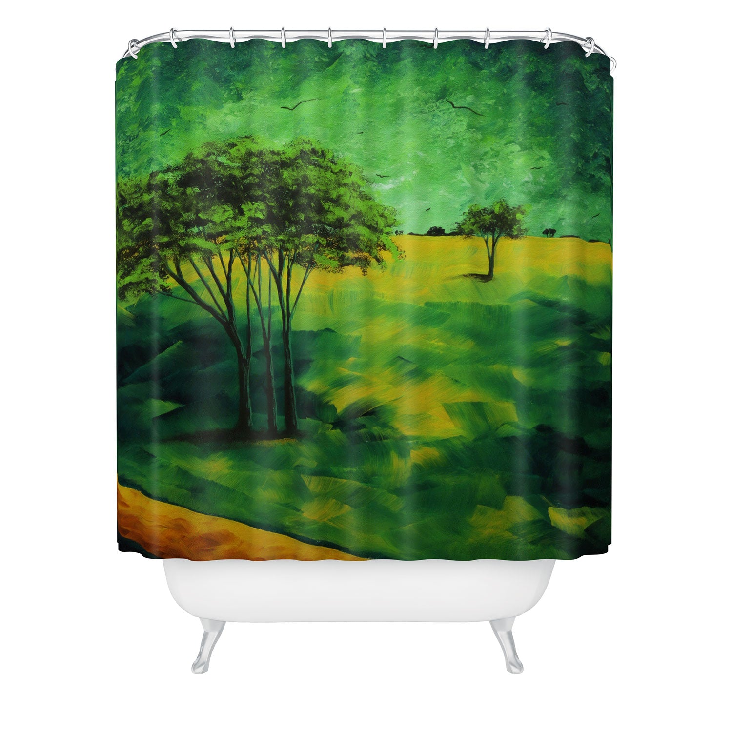 Set the stage. The Deny Designs shower curtain is crafted from 100% woven polyester and makes the perfect backdrop for whatever your bathroom decor may be. Adding some design to your shower curtains is a great way to make a statement in a room known for presenting plenty of design challenges. The buttonhole openings along the top means that you're free to use any curtain rings or hooks you please. And the best part? Every purchase pays the artist who designed it—supporting creativity worldwide.