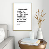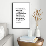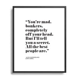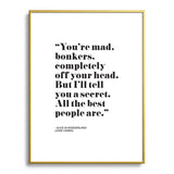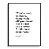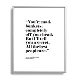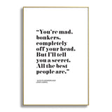Mambo Art Studio Alice in Wonderlad Quote Metal Framed Art Print