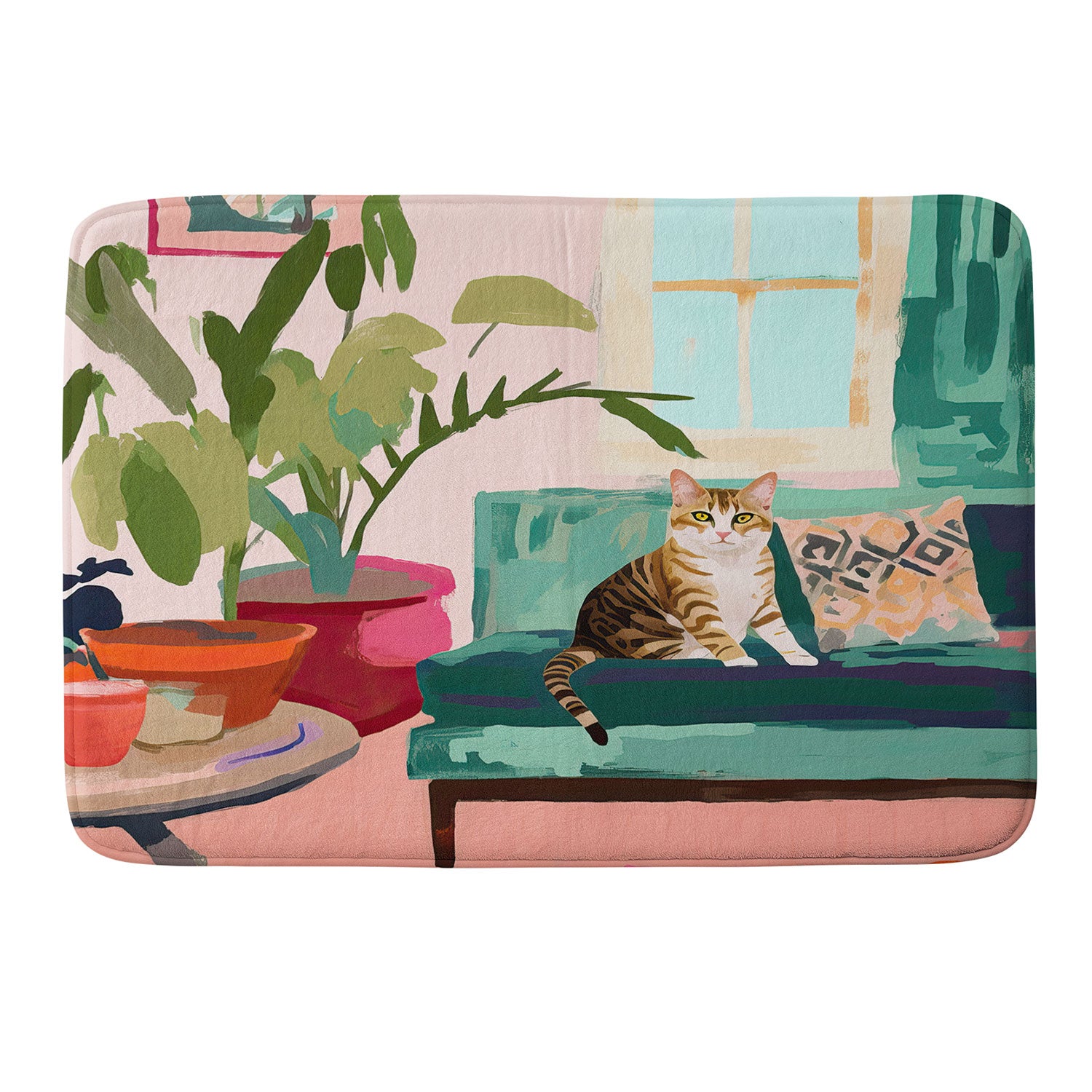 Mambo Art Studio Cat in Boho Living Room Memory Foam Bath Mat