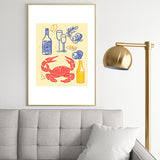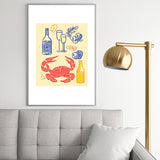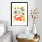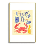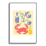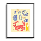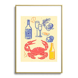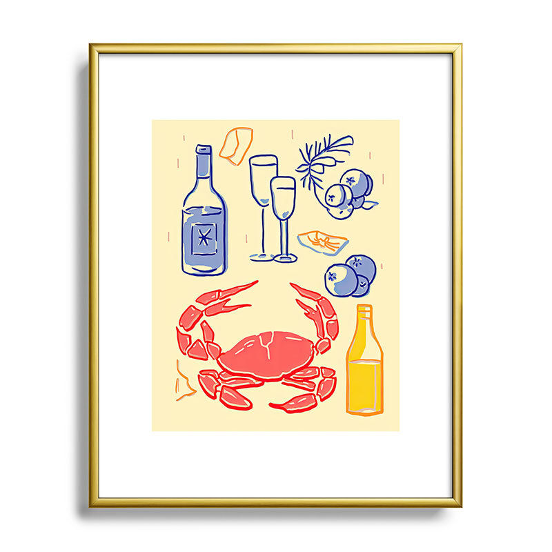 Mambo Art Studio Crab and Wine Kitchen Art Metal Framed Art Print
