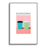 Mambo Art Studio Take away coffee Buongiorno Metal Framed Art Print